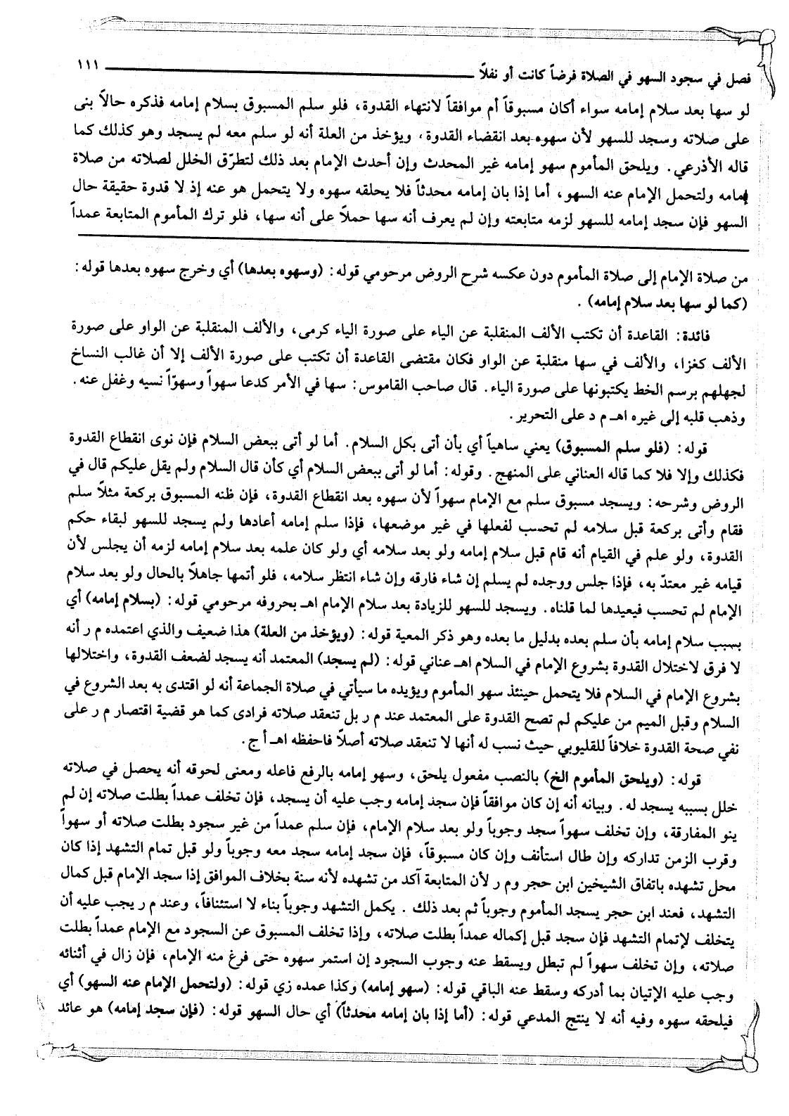 ـــــــــــــــــــــــــــــQمِنْ صَلَاةِ الْإِمَامِ إلَى صَلَاةِ الْمَأْمُومِ دُونَ عَكْسِهِ شَرْحُ الرَّوْضِ مَرْحُومِيٌّ قَوْلُهُ: (وَسَهْوُهُ بَعْدَهَا) أَيْ وَخَرَجَ سَهْوُهُ بَعْدَهَا قَوْلُهُ: (كَمَا لَوْ سَهَا بَعْدَ سَلَامِ إمَامِهِ) .