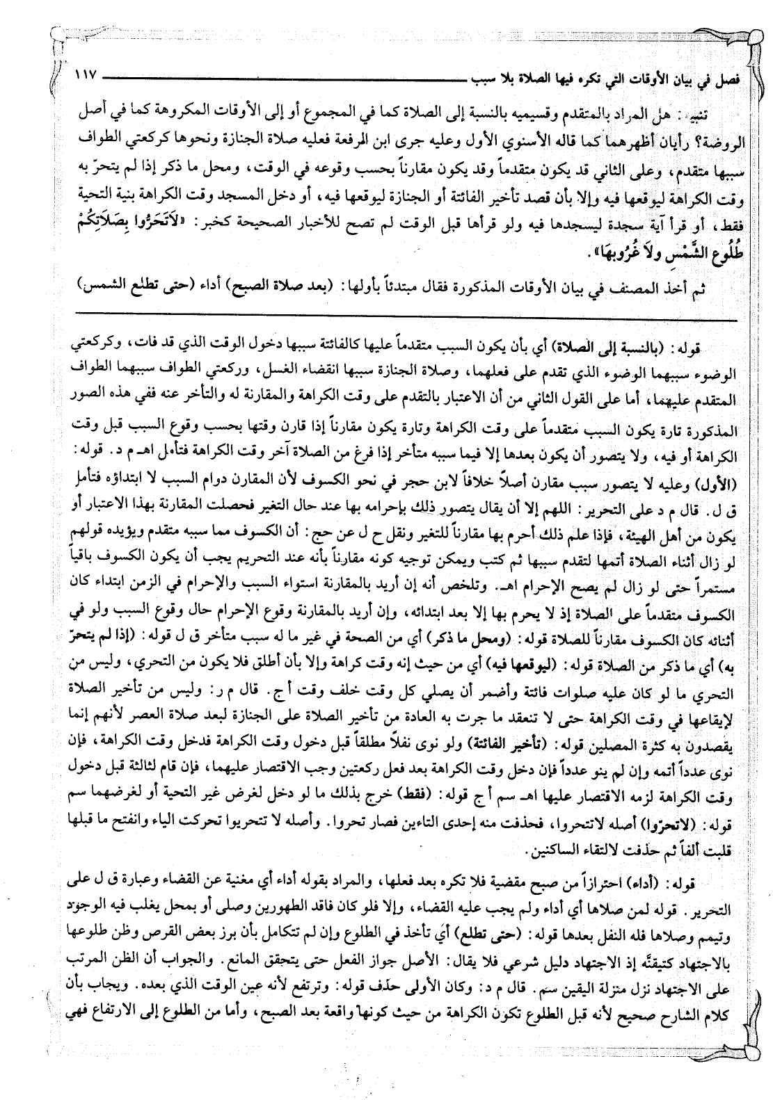 ثُمَّ أَخَذَ الْمُصَنِّفُ فِي بَيَانِ الْأَوْقَاتِ الْمَذْكُورَةِ فَقَالَ مُبْتَدِئًا بِأَوَّلِهَا: (بَعْدَ صَلَاةِ الصُّبْحِ) أَدَاءً (حَتَّى تَطْلُعَ الشَّمْسُ)