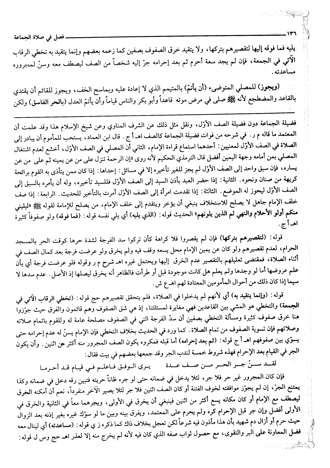 ـــــــــــــــــــــــــــــQفَضِيلَةُ الْجَمَاعَةِ دُونَ فَضِيلَةِ الصَّفِّ الْأَوَّلِ، وَنُقِلَ مِثْلُ ذَلِكَ عَنْ الشَّرَفِ الْمُنَاوِيِّ وَعَنْ شَيْخِ الْإِسْلَامِ هَذَا وَقَدْ عَلِمْت أَنَّ الْمُعْتَمَدَ مَا قَالَهُ م ر. فِي شَرْحِهِ مِنْ فَوَاتِ فَضِيلَةِ الْجَمَاعَةِ كَالصَّفِّ اهـ أج.