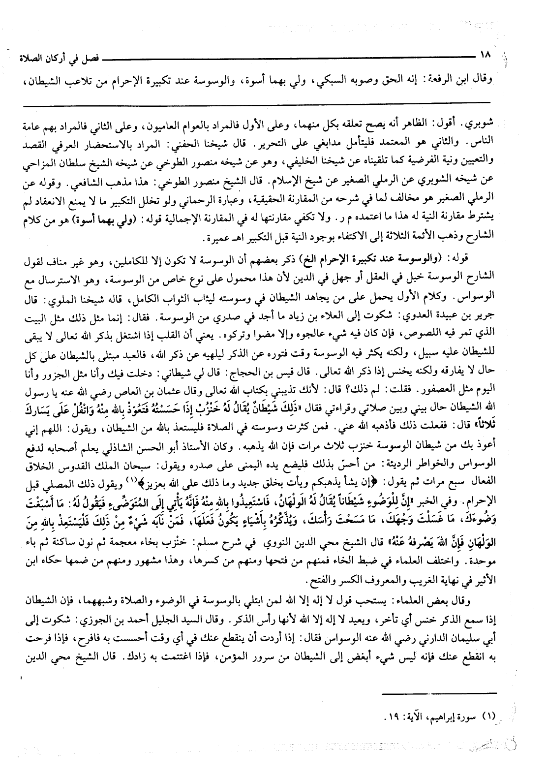 وَالْوَسْوَسَةُ عِنْدَ تَكْبِيرَةِ الْإِحْرَامِ مِنْ تَلَاعُبِ الشَّيْطَانِ،