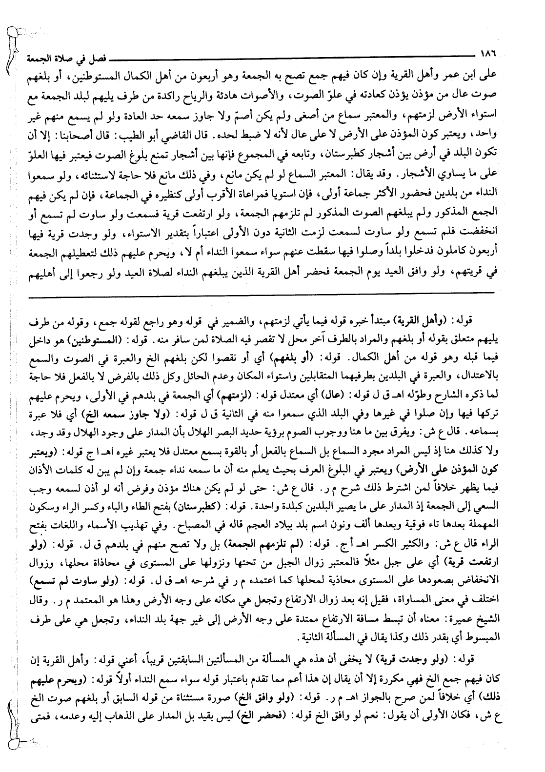 وَأَهْلُ الْقَرْيَةِ وَإِنْ كَانَ فِيهِمْ جَمْعٌ تَصِحُّ بِهِ الْجُمُعَةُ وَهُوَ أَرْبَعُونَ مِنْ أَهْلِ الْكَمَالِ الْمُسْتَوْطِنِينَ، أَوْ بَلَغَهُمْ صَوْتٌ عَالٍ مِنْ مُؤَذِّنٍ يُؤَذِّنُ كَعَادَتِهِ فِي عُلُوِّ الصَّوْتِ، وَالْأَصْوَاتُ هَادِئَةٌ وَالرِّيَاحُ رَاكِدَةٌ مِنْ طَرَفٍ يَلِيهِمْ لِبَلَدِ الْجُمُعَةِ مَعَ اسْتِوَاءِ الْأَرْضِ لَزِمَتْهُمْ، وَالْمُعْتَبَرُ سَمَاعُ مَنْ أَصْغَى وَلَمْ يَكُنْ أَصَمَّ وَلَا جَاوَزَ سَمْعُهُ حَدَّ الْعَادَةِ وَلَوْ لَمْ يَسْمَعْ مِنْهُمْ غَيْرُ وَاحِدٍ، وَيُعْتَبَرُ كَوْنُ الْمُؤَذِّنِ عَلَى الْأَرْضِ لَا عَلَى عَالٍ لِأَنَّهُ لَا ضَبْطَ لِحَدِّهِ قَالَ الْقَاضِي أَبُو الطَّيِّبِ: قَالَ أَصْحَابُنَا: إلَّا أَنْ تَكُونَ الْبَلَدُ فِي أَرْضٍ بَيْنَ أَشْجَارٍ كَطَبَرِسْتَانَ، وَتَابَعَهُ فِي الْمَجْمُوعِ فَإِنَّهَا بَيْنَ أَشْجَارٍ تَمْنَعُ بُلُوغَ الصَّوْتِ فَيُعْتَبَرُ فِيهَا الْعُلُوُّ عَلَى مَا يُسَاوِي الْأَشْجَارَ وَقَدْ يُقَالُ: الْمُعْتَبَرُ السَّمَاعُ لَوْ لَمْ يَكُنْ مَانِعٌ، وَفِي ذَلِكَ مَانِعٌ فَلَا حَاجَةَ لِاسْتِثْنَائِهِ، وَلَوْ سَمِعُوا النِّدَاءَ مِنْ بَلَدَيْنِ فَحُضُورُ الْأَكْثَرِ جَمَاعَةً أَوْلَى، فَإِنْ اسْتَوَيَا فَمُرَاعَاةُ الْأَقْرَبِ أَوْلَى كَنَظِيرِهِ فِي الْجَمَاعَةِ، فَإِنْ لَمْ يَكُنْ فِيهِمْ الْجَمْعُ الْمَذْكُورُ وَلَمْ يَبْلُغْهُمْ الصَّوْتُ الْمَذْكُورُ لَمْ تَلْزَمْهُمْ الْجُمُعَةُ.