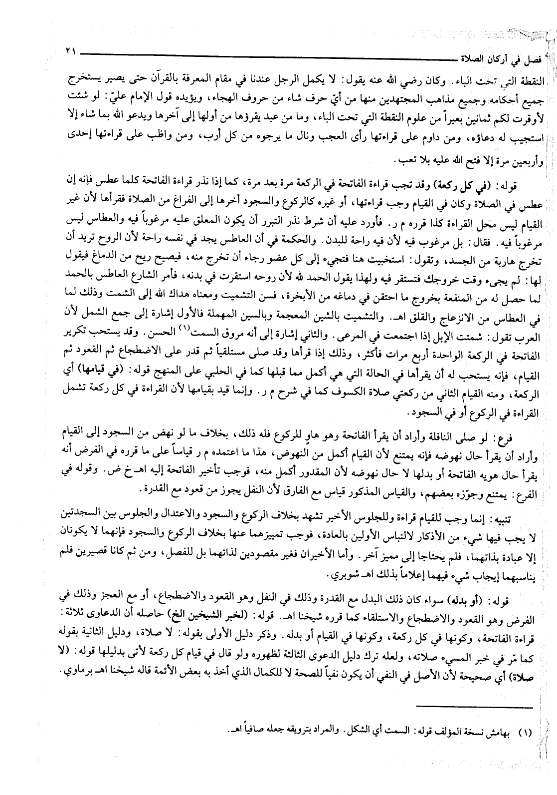 ـــــــــــــــــــــــــــــQوَالْأَوْلَى فِي التَّعْلِيلِ مَا نَقَلَهُ بَعْضُ مَشَايِخِنَا أَنَّ نَفْيَ الصِّحَّةِ عَنْ الْحَقِيقَةِ أَقْرَبُ إلَى نَفْيِ الْحَقِيقَةِ مِنْ نَفْيِ الْكَمَالِ عَنْهَا كَمَا قَالَهُ إمَامُ الْحَرَمَيْنِ. وَقَوْلُهُ: «لِمَنْ لَمْ يَقْرَأْ بِفَاتِحَةِ الْكِتَابِ» الْبَاءُ زَائِدَةٌ وَظَاهِرُهُ يَشْمَلُ الْمَأْمُومَ، وَقَدْ صَرَّحَ بِهِ فِي أَحَادِيثَ أُخَرَ وَضَعَّفَ الْحَافِظُ خَبَرَ «مَنْ صَلَّى خَلْفَ الْإِمَامِ فَقِرَاءَةُ الْإِمَامِ قِرَاءَةٌ لَهُ» فَيَقْرَؤُهَا الْمُقْتَدِي وَلَوْ فِي الْجَهْرِيَّةِ كَمَا جَاءَ عَنْ نَيِّفٍ وَعِشْرِينَ صَحَابِيًّا، وَالْأَوْجَهُ أَنَّهُ لَوْ قَرَأَ الْفَاتِحَةَ بِقَصْدِ الذِّكْرِ لَمْ تُجْزِهِ عَنْ قِرَاءَتِهَا لِوُجُودِ الصَّارِفِ، وَقَدْ يَشْمَلُهُ قَوْلُهُ الْآتِي وَيَجِبُ أَنْ لَا يَقْصِدَ بِالرُّكْنِ غَيْرَهُ.