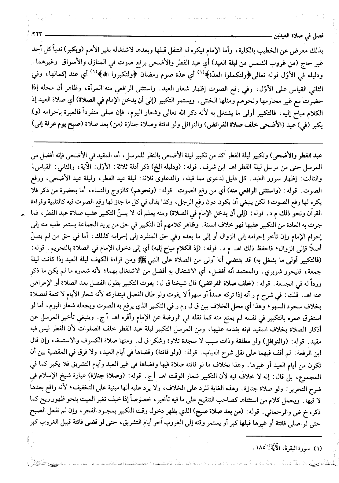 ـــــــــــــــــــــــــــــQعِيدِ الْفِطْرِ وَالْأَضْحَى) وَتَكْبِيرُ لَيْلَةِ الْفِطْرِ آكَدُ مِنْ تَكْبِيرِ لَيْلَةِ الْأَضْحَى بِالنَّظَرِ لِلْمُرْسَلِ، أَمَّا الْمُقَيَّدُ فِي الْأَضْحَى فَإِنَّهُ أَفْضَلُ مِنْ الْمُرْسَلِ حَتَّى مِنْ مُرْسَلِ لَيْلَةِ الْفِطْرِ اهـ ابْنُ شَرَفٍ.