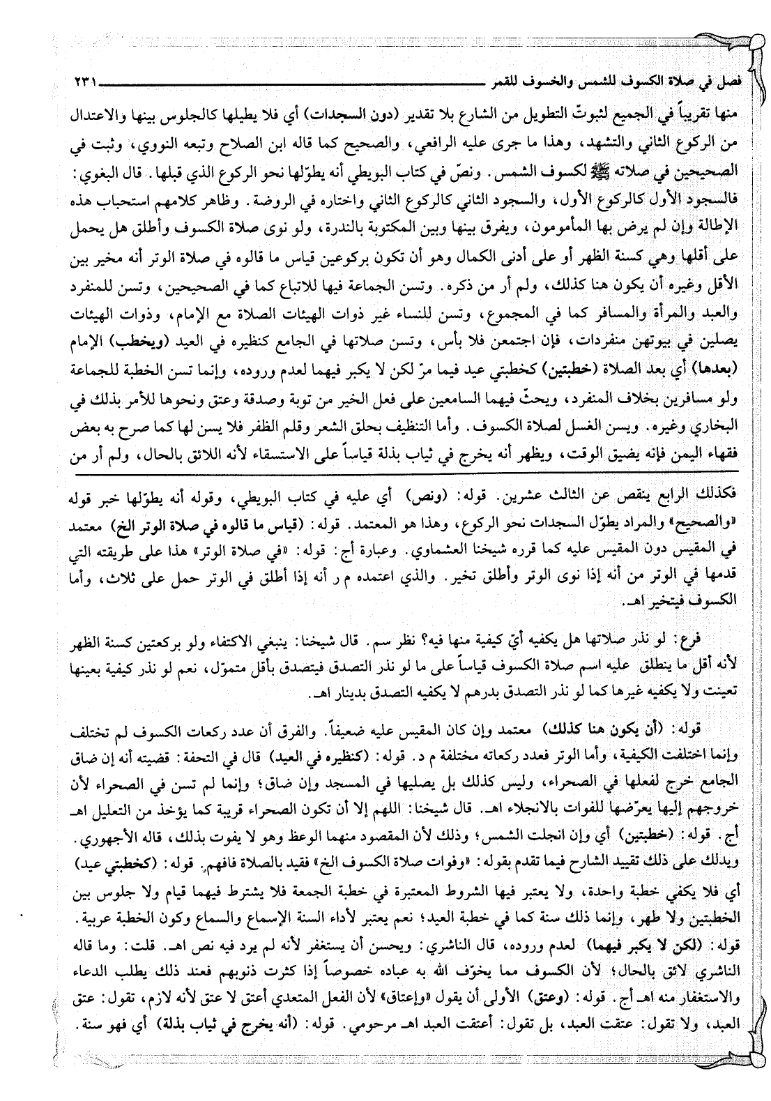 قَوْلُهُ: (أَنْ يَكُونَ هُنَا كَذَلِكَ) مُعْتَمَدٌ وَإِنْ كَانَ الْمَقِيسُ عَلَيْهِ ضَعِيفًا. وَالْفَرْقُ أَنَّ عَدَدَ رَكَعَاتِ الْكُسُوفِ لَمْ تَخْتَلِفْ وَإِنَّمَا اخْتَلَفَتْ الْكَيْفِيَّةُ، وَأَمَّا الْوِتْرُ فَعَدَدُ رَكَعَاتِهِ مُخْتَلِفَةٌ م د.
