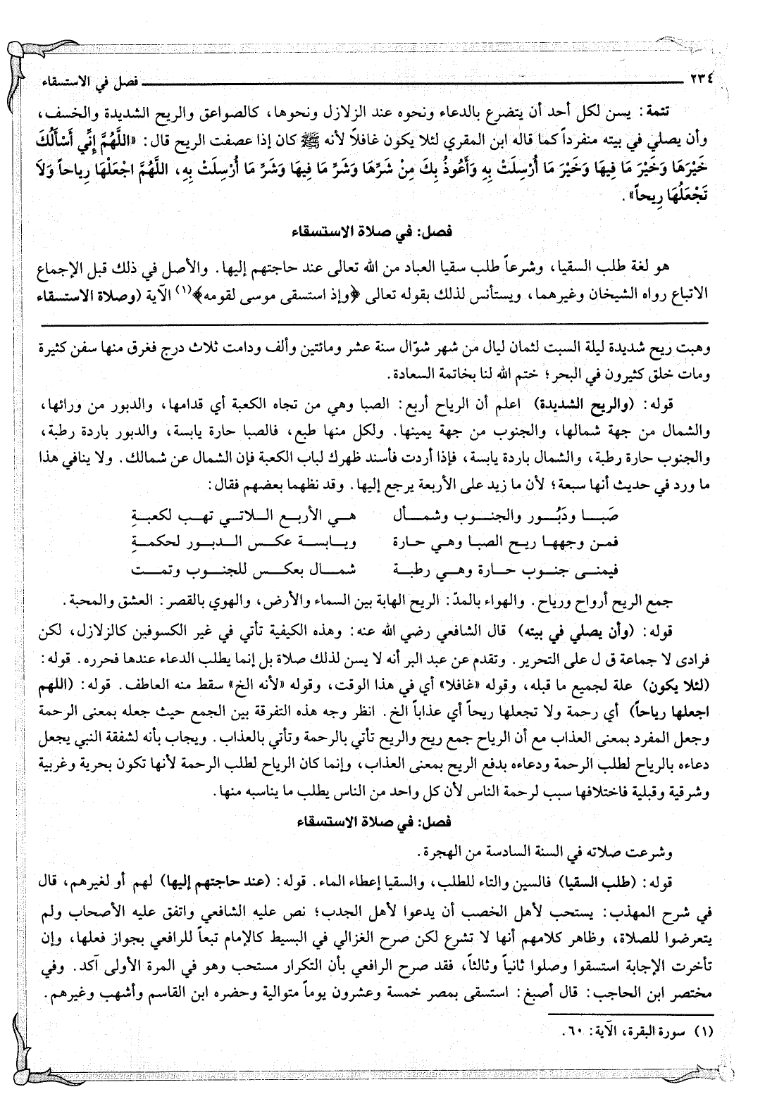 ِ وَشُرِعَتْ صَلَاتُهُ فِي السَّنَةِ السَّادِسَةِ مِنْ الْهِجْرَةِ. قَوْلُهُ: (طَلَبُ السُّقْيَا) فَالسِّينُ وَالتَّاءُ لِلطَّلَبِ، وَالسُّقْيَا إعْطَاءُ الْمَاءِ.