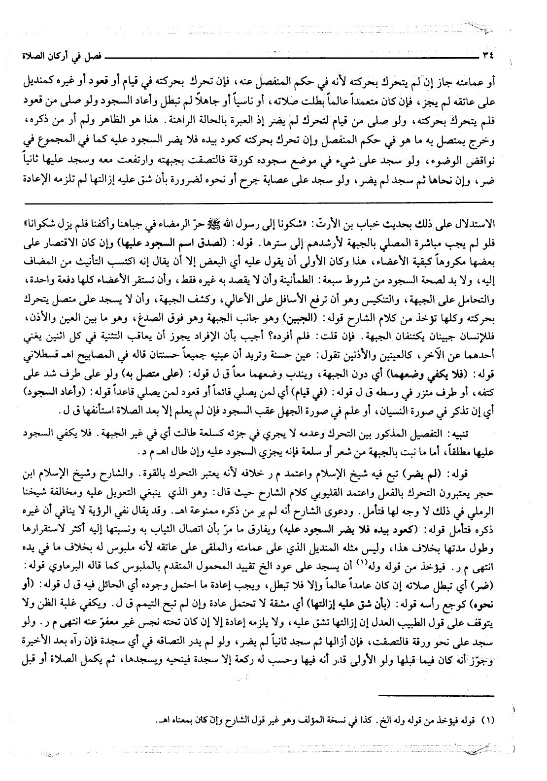 ـــــــــــــــــــــــــــــQالِاسْتِدْلَال عَلَى ذَلِكَ بِحَدِيثِ «خَبَّابِ بْنِ الْأَرَتِّ: شَكَوْنَا إلَى رَسُولِ اللَّهِ - صَلَّى اللَّهُ عَلَيْهِ وَسَلَّمَ - حَرَّ الرَّمْضَاءِ فِي جِبَاهِنَا وَأَكُفِّنَا فَلَمْ يُزِلْ شَكْوَانَا» فَلَوْ لَمْ يَجِبْ مُبَاشَرَةُ الْمُصَلِّي بِالْجَبْهَةِ لَأَرْشَدَهُمْ إلَى سَتْرِهَا.