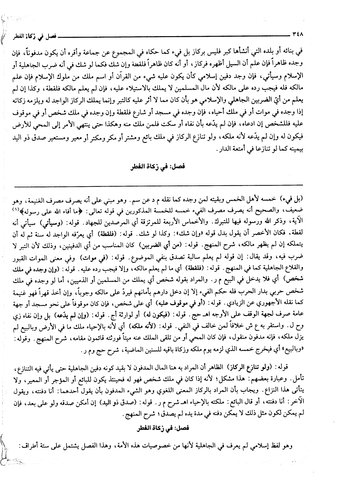 ـــــــــــــــــــــــــــــQبَلْ فَيْءٌ) خُمْسُهُ لِأَهْلِ الْخُمْسِ وَبَقِيَّتُهُ لِمَنْ وَجَدَهُ كَمَا نَقَلَهُ م د عَنْ سم. وَهُوَ مَبْنِيٌّ عَلَى أَنَّهُ يُصْرَفُ مَصْرِفَ الْغَنِيمَةِ، وَهُوَ ضَعِيفٌ، وَالصَّحِيحُ أَنَّهُ يُصْرَفُ مَصْرِفَ الْفَيْءِ خُمْسُهُ لِلْخَمْسَةِ الْمَذْكُورِينَ فِي قَوْله تَعَالَى: {مَا أَفَاءَ اللَّهُ عَلَى رَسُولِهِ} [الحشر: 7] الْآيَةَ، وَذِكْرُ اللَّهِ وَرَسُولِهِ فِيهَا لِلتَّبَرُّكِ.