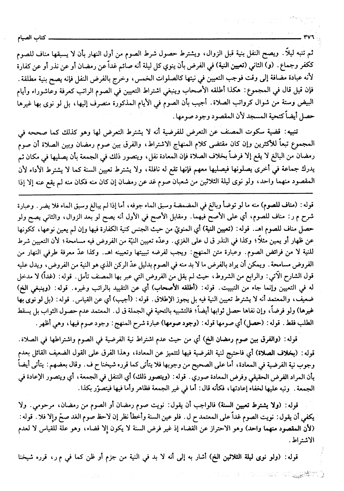 (وَ) الثَّانِي (تَعْيِينُ النِّيَّةِ) فِي الْفَرْضِ بِأَنْ يَنْوِيَ كُلَّ لَيْلَةٍ أَنَّهُ صَائِمٌ غَدًا عَنْ رَمَضَانَ أَوْ عَنْ نَذْرٍ أَوْ عَنْ كَفَّارَةٍ لِأَنَّهُ عِبَادَةٌ مُضَافَةٌ إلَى وَقْتٍ فَوَجَبَ التَّعْيِينُ فِي نِيَّتِهَا كَالصَّلَوَاتِ الْخَمْسِ، وَخَرَجَ بِالْفَرْضِ النَّفَلُ فَإِنَّهُ يَصِحُّ بِنِيَّةٍ مُطْلَقَةٍ. فَإِنْ قِيلَ قَالَ فِي الْمَجْمُوعِ: هَكَذَا أَطْلَقَهُ الْأَصْحَابُ وَيَنْبَغِي اشْتِرَاطُ التَّعْيِينِ فِي الصَّوْمِ الرَّاتِبِ كَعَرَفَةَ وَعَاشُورَاءَ وَأَيَّامِ الْبِيضِ وَسِتَّةٍ مِنْ شَوَّالٍ كَرَوَاتِبِ الصَّلَاةِ.