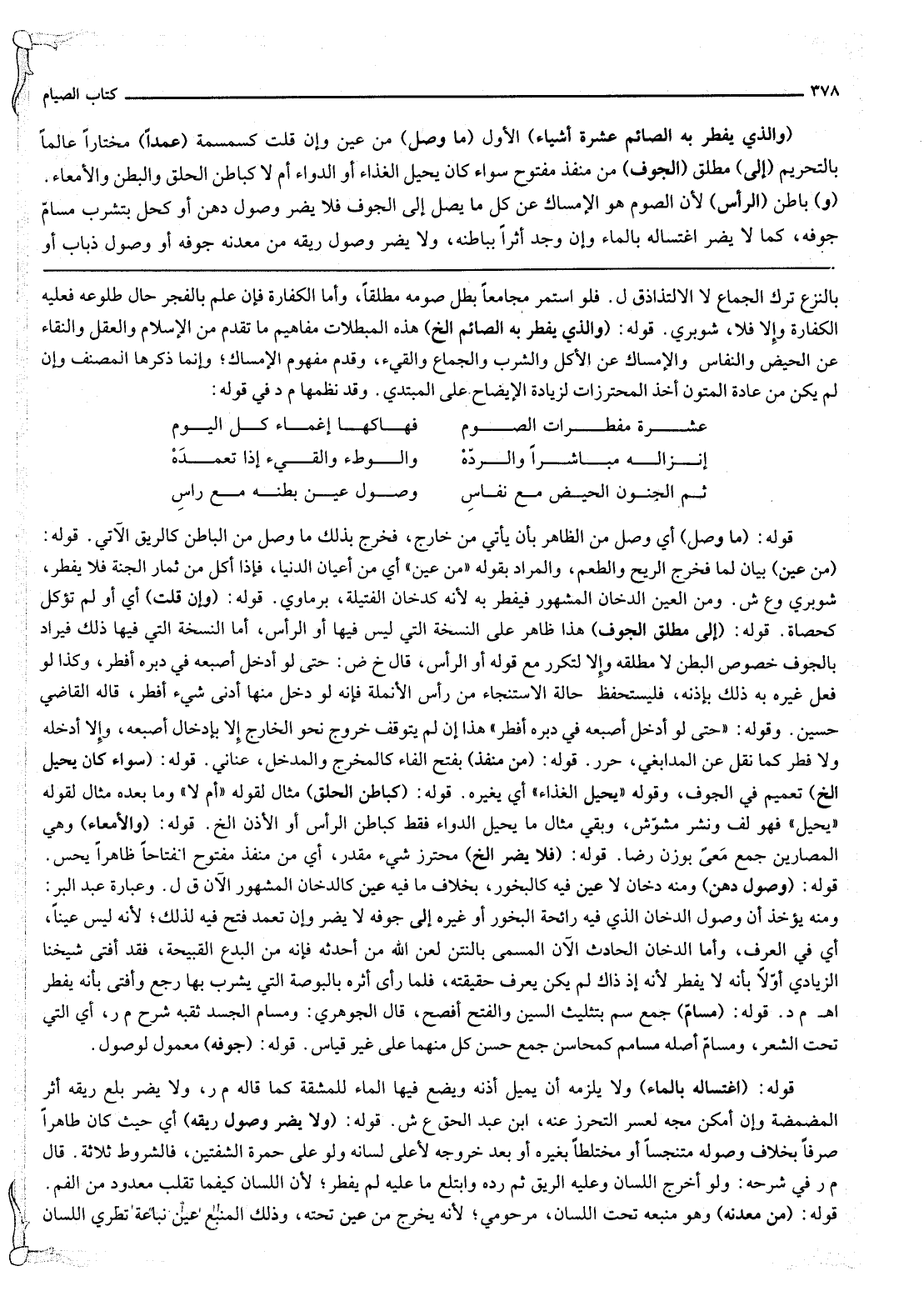 عَشَرَةٌ مُفْطِرَاتُ الصَّوْمِ ... فَهَاكَهَا إغْمَاءُ كُلِّ الْيَوْمِ
