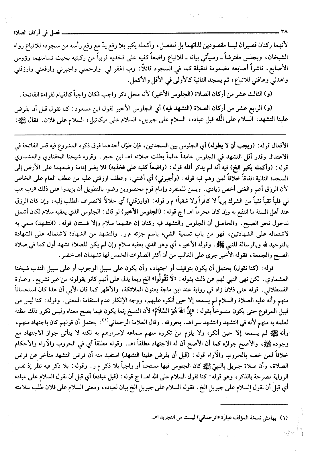 قَوْلُهُ: (التَّشَهُّدُ) سُمِّيَ بِهِ لِاشْتِمَالِهِ عَلَى الشَّهَادَتَيْنِ، فَهُوَ مِنْ بَابِ تَسْمِيَةِ الشَّيْءِ بِاسْمِ جُزْئِهِ م ر. وَالتَّشَهُّدُ مِنْ الشَّهَادَةِ لِاشْتِمَالِهِ عَلَى الشَّهَادَةِ بِالتَّوْحِيدِ لِلَّهِ وَبِالرِّسَالَةِ لِلنَّبِيِّ - صَلَّى اللَّهُ عَلَيْهِ وَسَلَّمَ -. وَقَوْلُهُ الْأَخِيرُ، أَيْ وَهُوَ الَّذِي يَعْقُبُهُ سَلَامٌ وَإِنْ لَمْ يَكُنْ لِلصَّلَاةِ تَشَهُّدٌ أَوَّلٌ كَمَا فِي صَلَاةِ الصُّبْحِ وَالْجُمُعَةِ، فَقَوْلُهُ الْأَخِيرُ جَرَى عَلَى الْغَالِبِ مِنْ أَنَّ أَكْثَرَ الصَّلَوَاتِ الْخَمْسِ لَهَا تَشَهُّدَانِ اهـ خِضْرٌ.