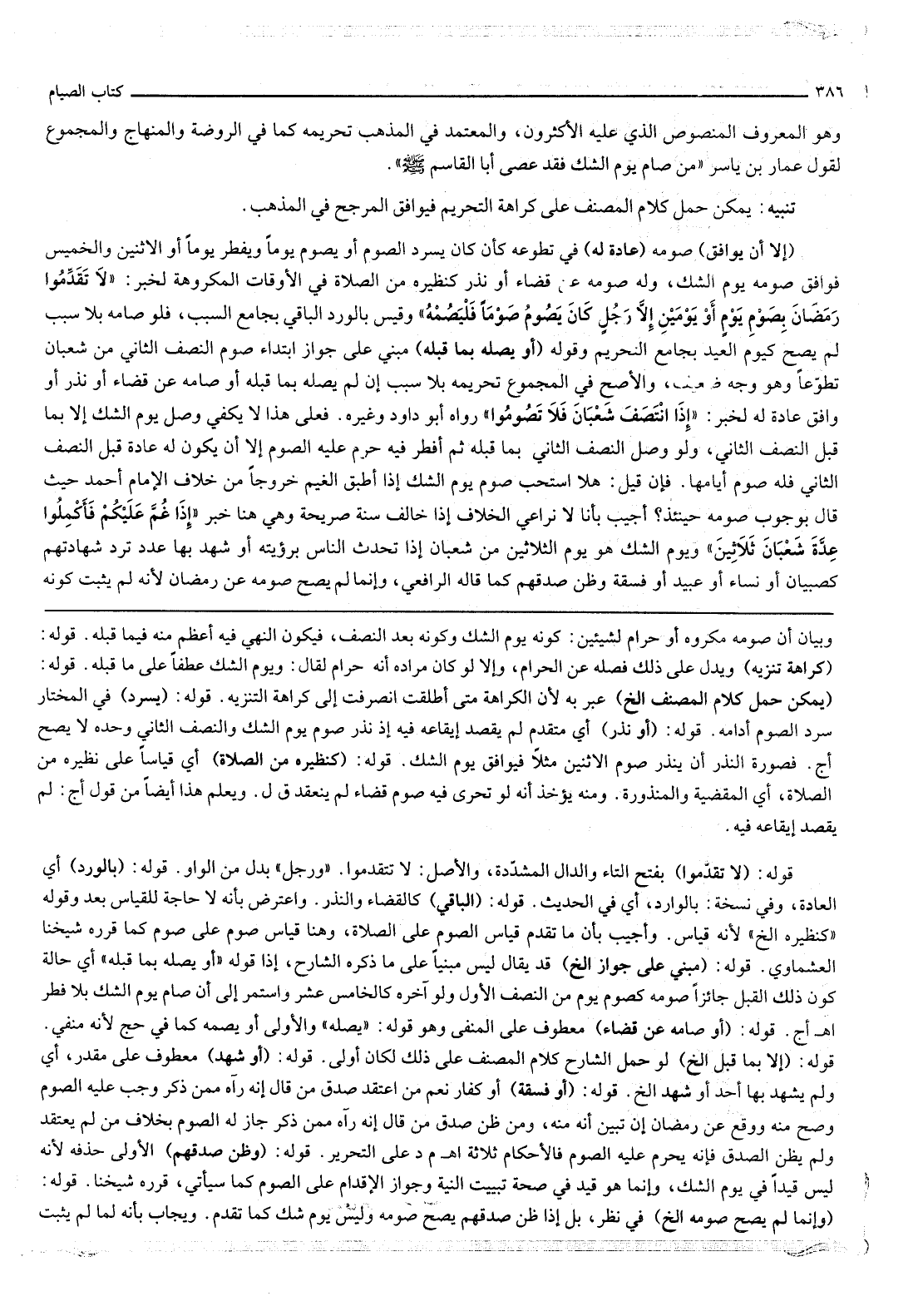 ـــــــــــــــــــــــــــــQوَبَيَانُ أَنَّ صَوْمَهُ مَكْرُوهٌ أَوْ حَرَامٌ لِشَيْئَيْنِ: كَوْنِهِ يَوْمَ الشَّكِّ وَكَوْنِهِ بَعْدَ النِّصْفِ، فَيَكُونُ النَّهْيُ فِيهِ أَعْظَمَ مِنْهُ فِيمَا قَبْلَهُ.