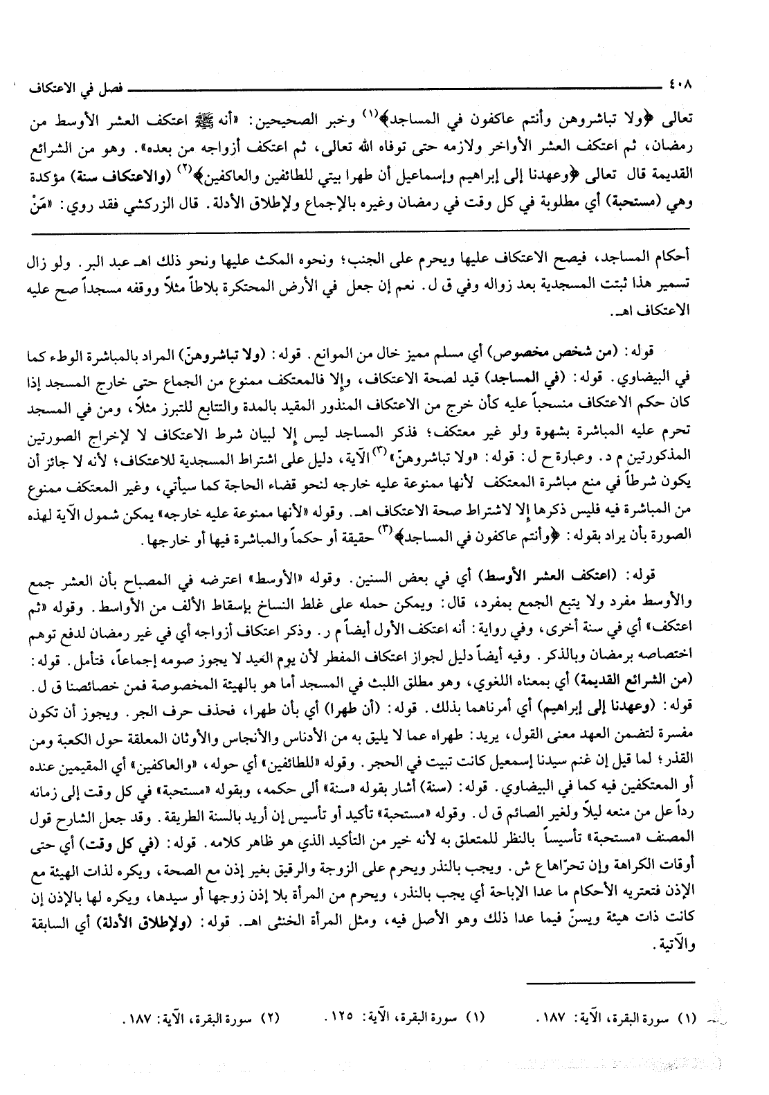 قَوْلُهُ: {وَلا تُبَاشِرُوهُنَّ} [البقرة: 187] الْمُرَادُ بِالْمُبَاشَرَةِ الْوَطْءُ كَمَا فِي الْبَيْضَاوِيِّ.