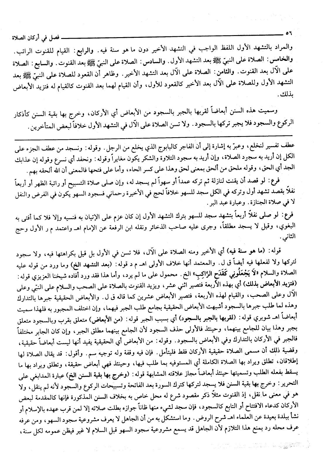 وَسُمِّيَتْ هَذِهِ السُّنَنُ أَبْعَاضًا لِقُرْبِهَا بِالْجَبْرِ بِالسُّجُودِ مِنْ الْأَبْعَاضِ أَيْ الْأَرْكَانِ، وَخَرَجَ بِهَا بَقِيَّةُ السُّنَنِ كَأَذْكَارِ الرُّكُوعِ وَالسُّجُودِ فَلَا يُجْبَرُ تَرْكُهَا بِالسُّجُودِ. وَلَا تُسَنُّ الصَّلَاةُ عَلَى الْآلِ فِي التَّشَهُّدِ الْأَوَّلِ خِلَافًا لِبَعْضِ الْمُتَأَخِّرِينَ.