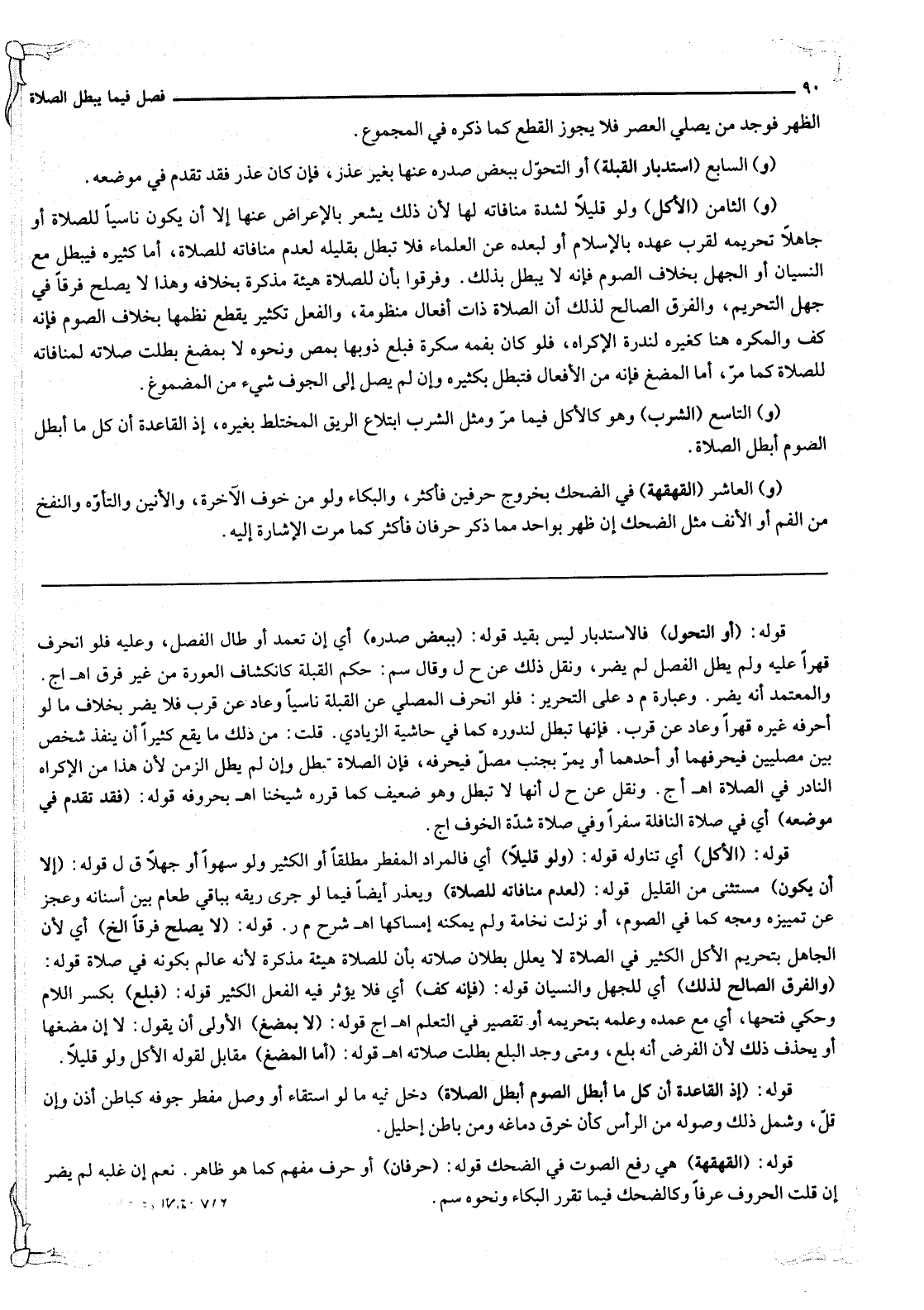 قَوْلُهُ: (الْقَهْقَهَةُ) هِيَ رَفْعُ الصَّوْتِ فِي الضَّحِكِ قَوْلُهُ: (حَرْفَانِ) أَوْ حَرْفٌ مُفْهِمٌ كَمَا هُوَ ظَاهِرٌ. نَعَمْ إنْ غَلَبَهُ لَمْ يَضُرَّ إنْ قَلَّتْ الْحُرُوفُ عُرْفًا وَكَالضَّحِكِ فِيمَا تَقَرَّرَ الْبُكَاءُ وَنَحْوُهُ سم.