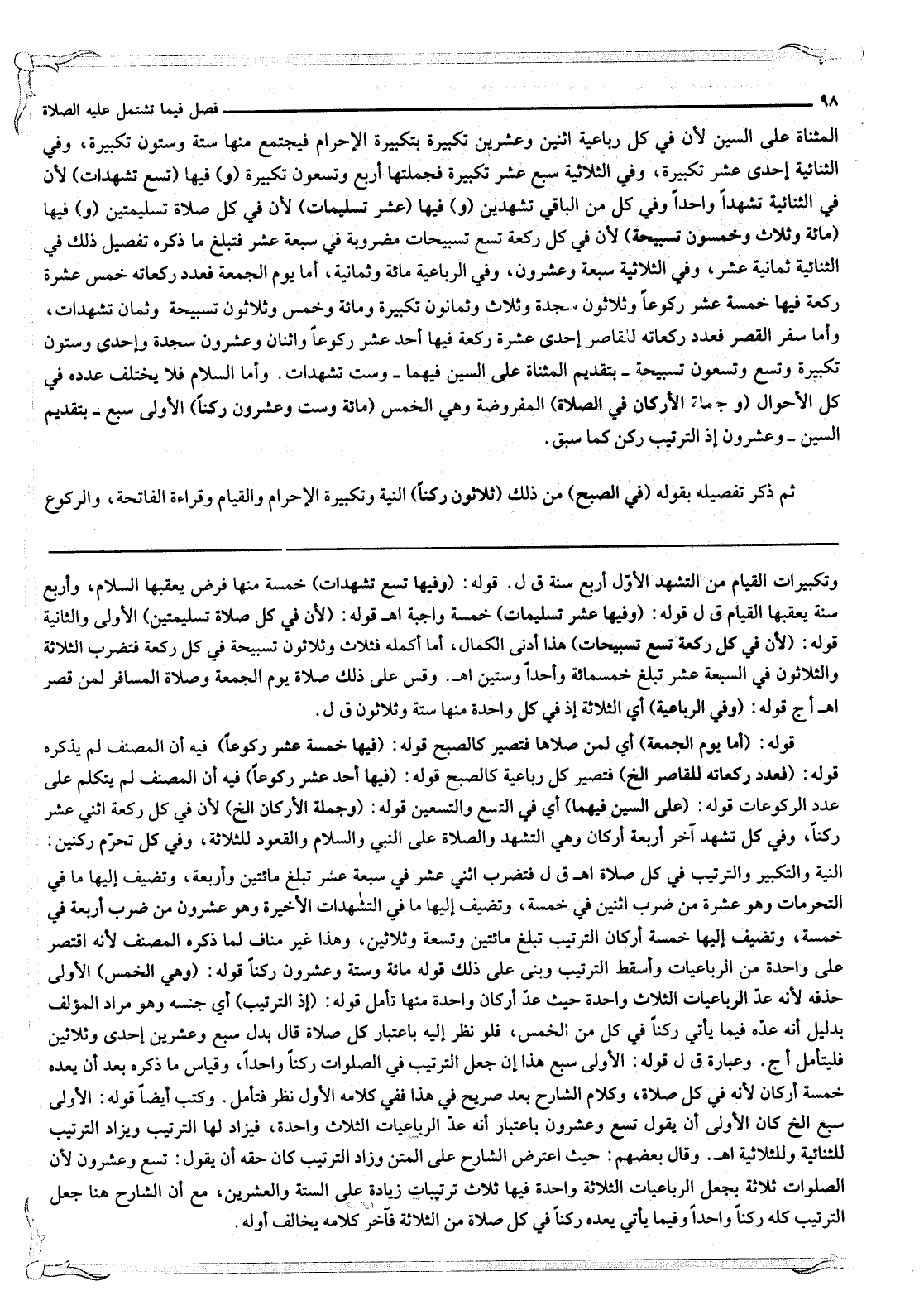 ثُمَّ ذَكَرَ تَفْصِيلَهُ بِقَوْلِهِ (فِي الصُّبْحِ) مِنْ ذَلِكَ (ثَلَاثُونَ رُكْنًا) النِّيَّةُ وَتَكْبِيرَةُ الْإِحْرَامِ وَالْقِيَامُ وَقِرَاءَةُ الْفَاتِحَةِ، وَالرُّكُوعُ
