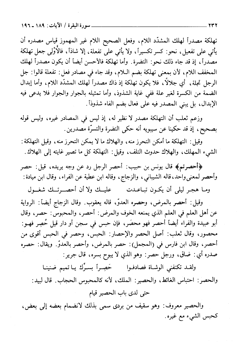 أُحْصِرْتُمْ قَالَ يُونُسُ بْنُ حَبِيبٍ: أُحْصِرَ الرَّجُلُ رُدَّ عَنْ وَجْهٍ يُرِيدُهُ، قِيلَ: حَصَرَ وَأُحْصِرَ لِمَعْنًى وَاحِدٍ، قَالَهُ الشَّيْبَانِيُّ، وَالزَّجَّاجُ، وَقَالَهُ ابْنُ عَطِيَّةَ عَنِ الْفَرَّاءِ، وَقَالَ ابْنُ مَيَّادَةَ: