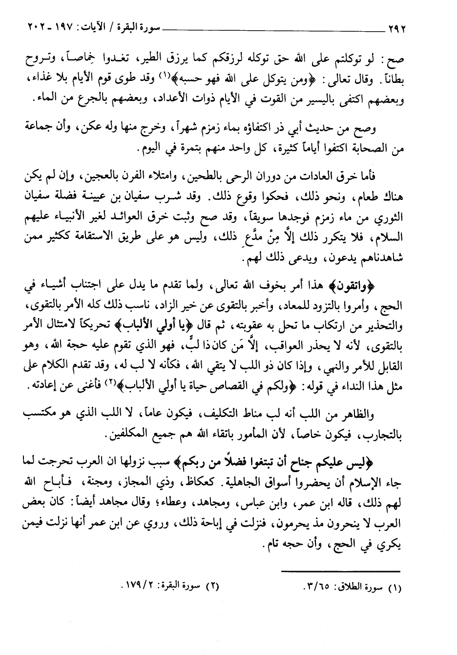 لَيْسَ عَلَيْكُمْ جُناحٌ أَنْ تَبْتَغُوا فَضْلًا مِنْ رَبِّكُمْ سَبَبُ نُزُولِهَا أَنَّ الْعَرَبَ تَحَرَّجَتْ لَمَّا جَاءَ الْإِسْلَامُ أَنْ يَحْضُرُوا أَسْوَاقَ الْجَاهِلِيَّةِ. كَعُكَاظَ، وَذِي الْمَجَازِ، وَمَجَنَّةَ، فَأَبَاحَ اللَّهُ لَهُمْ ذَلِكَ، قَالَهُ ابْنُ عُمَرَ، وَابْنُ عَبَّاسٍ، وَمُجَاهِدٌ، وَعَطَاءٌ وَقَالَ مُجَاهِدٌ أَيْضًا: كَانَ بَعْضُ الْعَرَبِ لَا يَنْحَرُونَ مُذْ يُحْرِمُونَ، فَنَزَلَتْ فِي إِبَاحَةِ ذَلِكَ، وَرُوِيَ عَنِ ابْنِ عُمَرَ أَنَّهَا نَزَلَتْ فِيمَنْ يُكْرَى فِي الْحَجِّ، وَأَنَّ حجه تام.