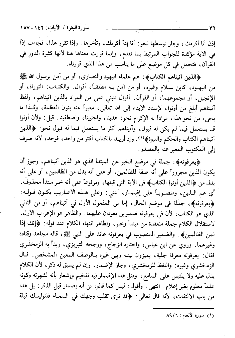 يَعْرِفُونَهُ: جُمْلَةٌ فِي مَوْضِعِ الْخَبَرِ عَنِ الْمُبْتَدَأِ الَّذِي هُوَ الَّذِينَ آتَيْنَاهُمْ، وَجُوِّزَ أَنْ يَكُونَ الَّذِينَ مَجْرُورًا عَلَى أَنَّهُ صِفَةٌ لِلظَّالِمِينَ، أَوْ عَلَى أَنَّهُ بَدَلٌ مِنَ الظَّالِمِينَ، أَوْ عَلَى أَنَّهُ بَدَلٌ مِنَ الَّذِينَ أُوتُوا الْكِتابَ فِي الْآيَةِ الَّتِي قَبْلَهَا، وَمَرْفُوعًا عَلَى أَنَّهُ خَبَرُ مُبْتَدَأٍ مَحْذُوفٍ، أَيْ هُمُ الَّذِينَ، وَمَنْصُوبًا عَلَى إِضْمَارِ، أَعْنِي: وَعَلَى هَذِهِ الْأَعَارِيبِ يَكُونُ قَوْلُهُ: