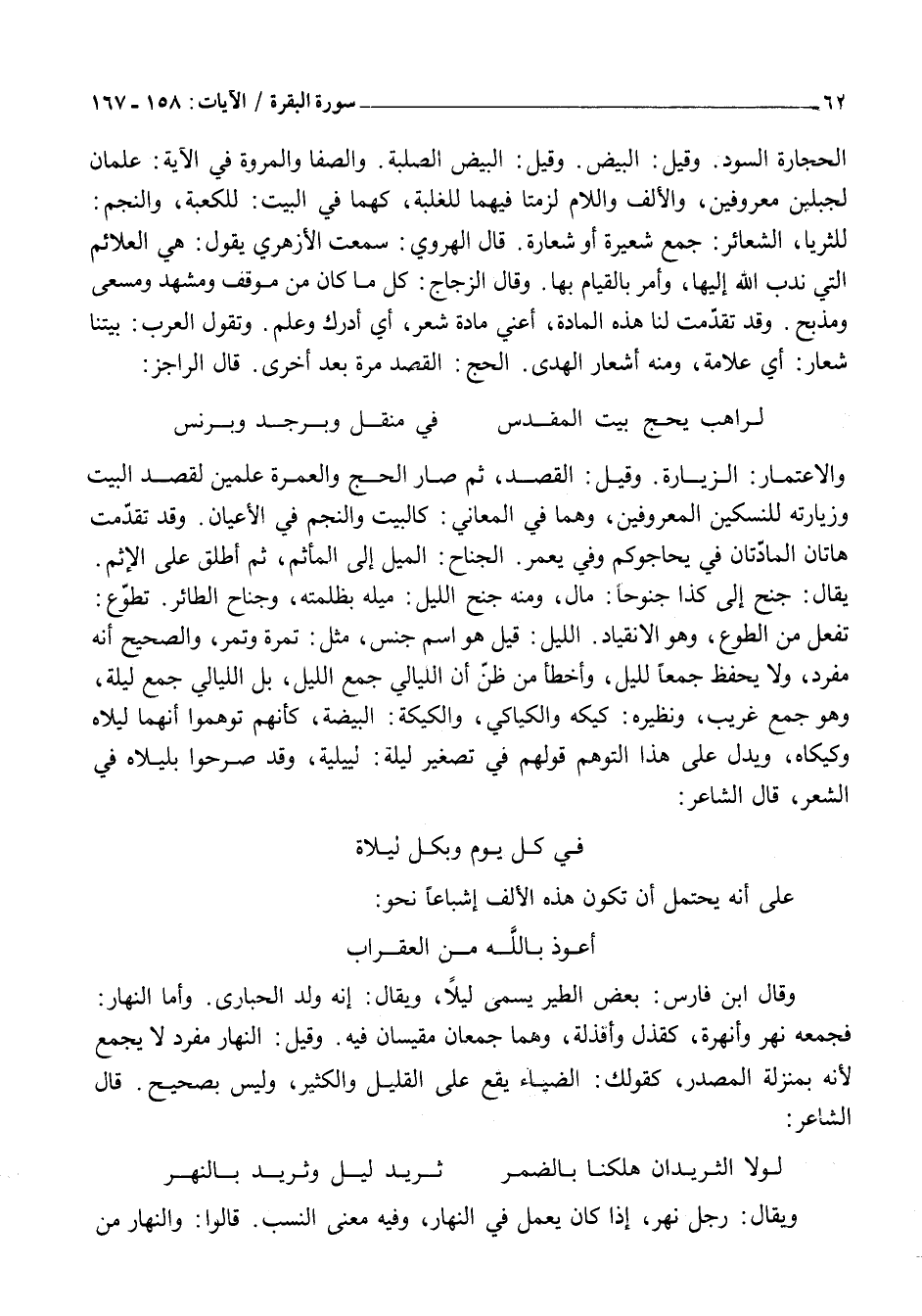 لِلثُّرَيَّا، الشَّعَائِرُ: جَمَعَ شَعِيرَةٍ أَوْ شَعَارَةٍ. قَالَ الْهَرَوِيُّ: سَمِعْتُ الْأَزْهَرِيَّ يَقُولُ: هِيَ الْعَلَائِمُ الَّتِي نَدَبَ اللَّهُ إِلَيْهَا، وَأَمَرَ بِالْقِيَامِ بِهَا. وَقَالَ الزَّجَّاجُ: كُلُّ مَا كَانَ مِنْ مَوْقِفٍ وَمَشْهَدٍ وَمَسْعًى وَمَذْبَحٍ. وَقَدْ تَقَدَّمَتْ لَنَا هَذِهِ الْمَادَّةُ، أَعْنِي مَادَّةَ شَعَرَ، أَيْ أَدْرَكَ وَعَلِمَ. وَتَقُولُ الْعَرَبُ: بَيْتُنَا شِعَارٌ: أَيْ عَلَامَةٌ، وَمِنْهُ إِشْعَارُ الْهَدْيِ. الْحَجُّ: الْقَصْدُ مَرَّةً بَعْدَ أُخْرَى. قَالَ الرَّاجِزُ:
