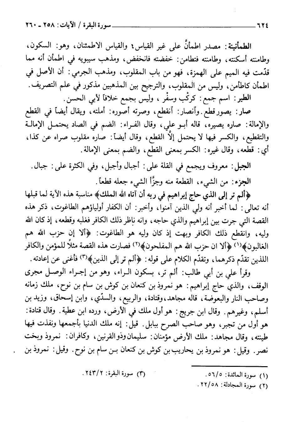 أَلَمْ تَرَ إِلَى الَّذِي حَاجَّ إِبْراهِيمَ فِي رَبِّهِ أَنْ آتاهُ اللَّهُ الْمُلْكَ مُنَاسَبَةُ هَذِهِ الْآيَةِ لِمَا قَبْلَهَا أَنَّهُ تَعَالَى: لَمَّا أخبر أنه ولي الذين آمنوا، وأخبر: أن الكفار أولياؤهم الطاغوت، ذكر هَذِهِ الْقِصَّةِ الَّتِي جَرَتْ بَيْنَ إِبْرَاهِيمَ وَالَّذِي حَاجَّهُ، وَأَنَّهُ نَاظَرَ ذَلِكَ الْكَافِرَ فَغَلَبَهُ وَقَطَعَهُ، إِذْ كَانَ اللَّهُ وَلِيَّهُ، وَانْقَطَعَ ذَلِكَ الْكَافِرُ وَبُهِتَ إِذْ كَانَ وَلَيُّهُ هُوَ الطَّاغُوتَ: أَلَا فَإِنَّ حِزْبَ اللَّهِ هُمُ الْغالِبُونَ «1» أَلا إِنَّ حِزْبَ اللَّهِ هُمُ الْمُفْلِحُونَ «2» فَصَارَتْ هَذِهِ الْقِصَّةُ مَثَلًا لِلْمُؤْمِنِ وَالْكَافِرِ اللَّذَيْنِ تَقَدَّمَ ذِكْرُهُمَا، وَتَقَدَّمَ الْكَلَامُ عَلَى قَوْلِهِ: أَلَمْ تَرَ إِلَى الَّذِينَ «3» فَأَغْنَى عَنْ إِعَادَتِهِ.