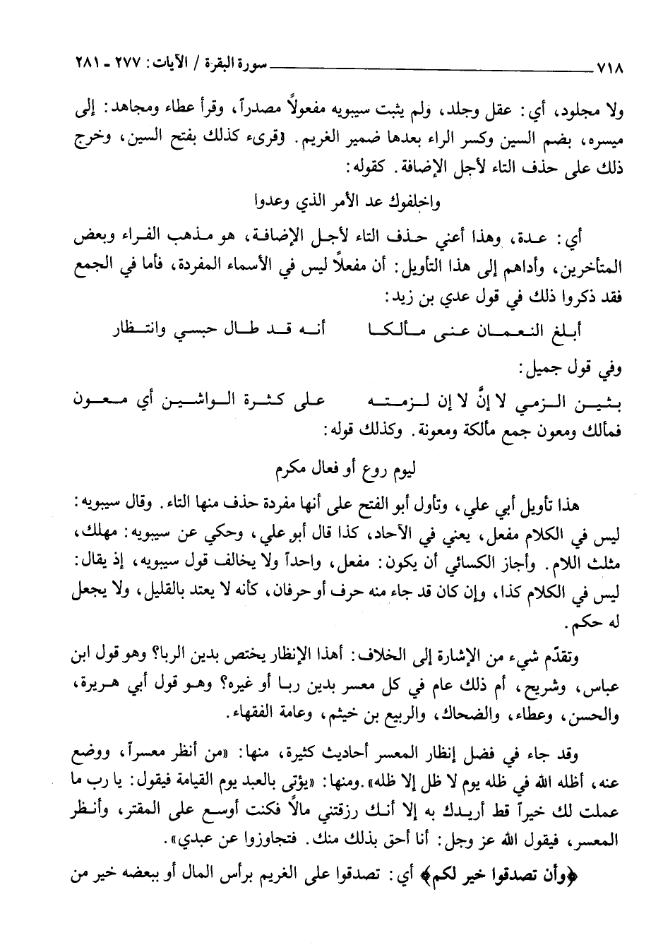 . وَأَنْ تَصَدَّقُوا خَيْرٌ لَكُمْ أَيْ: تَصَدَّقُوا عَلَى الْغَرِيمِ بِرَأْسِ الْمَالِ أَوْ بِبَعْضِهِ خَيْرٌ مِنَ