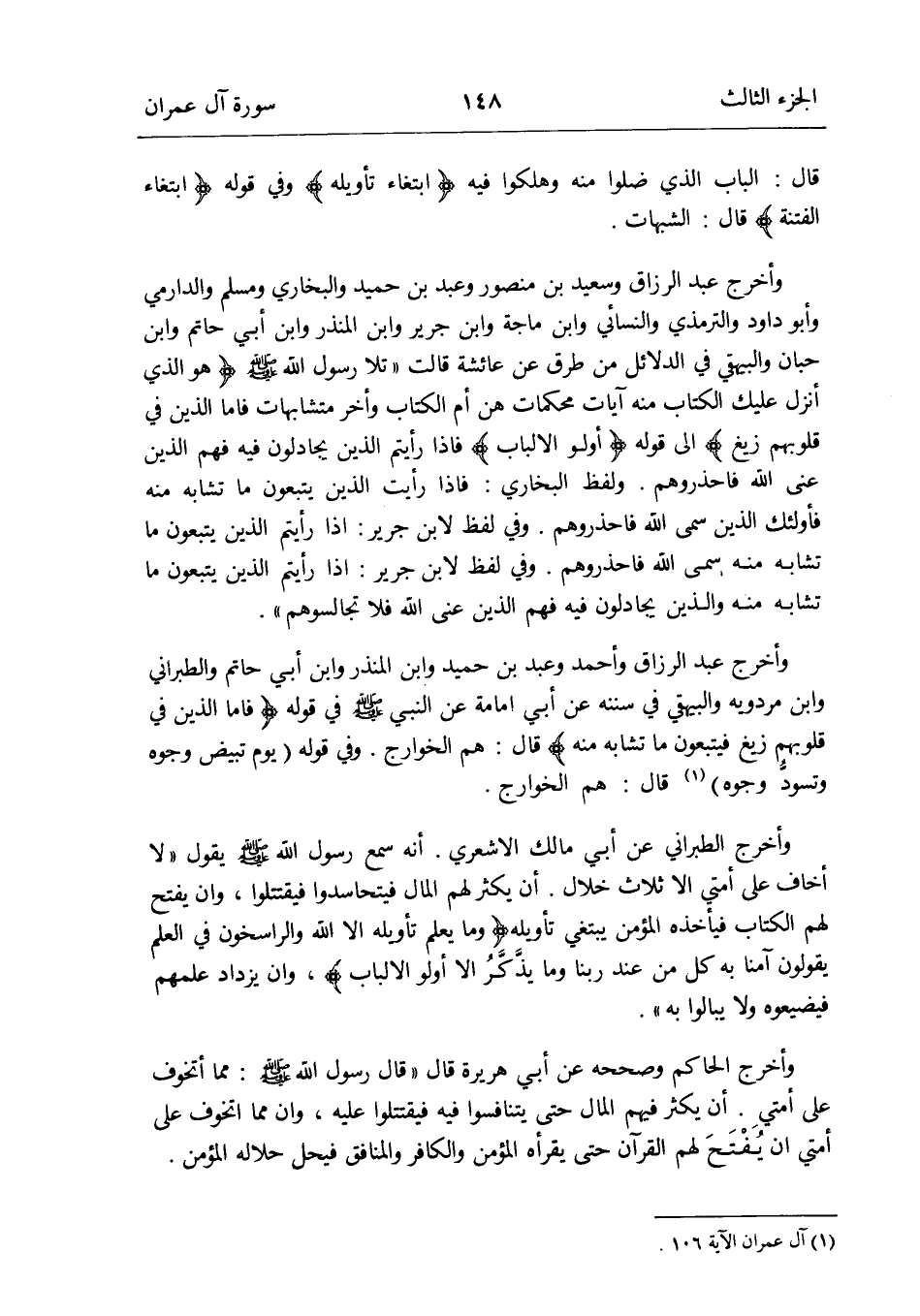 وَلَفظ البُخَارِيّ: فَإِذا رَأَيْت الَّذين يتبعُون مَا تشابه مِنْهُ فَأُولَئِك الَّذين سمى الله فاحذروهم