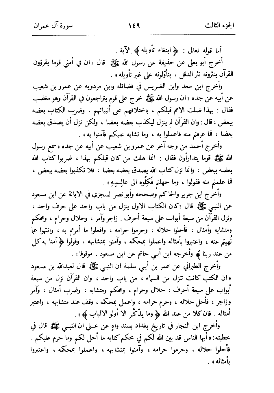 فأحلوا حَلَاله وحرموا حرَامه وآمنوا بمتشابهه وَاعْمَلُوا بمحكمه واعتبروا بأمثاله
