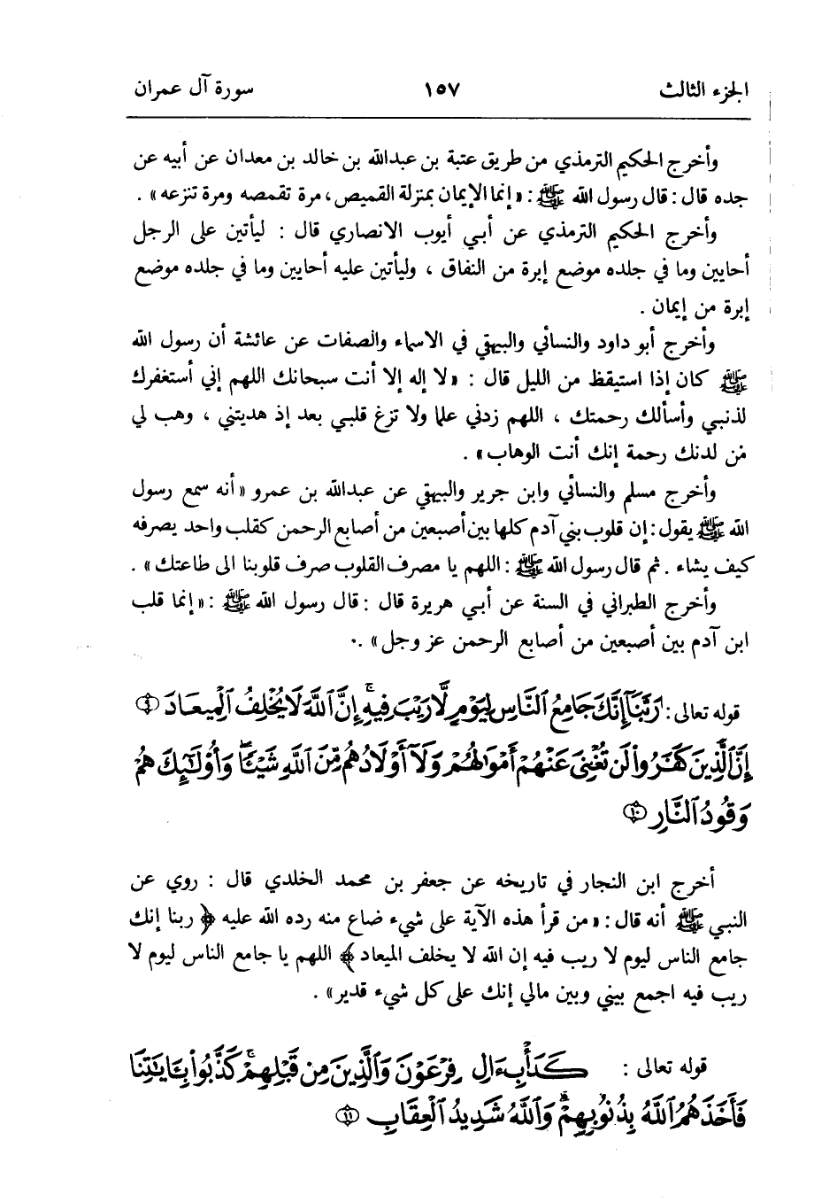 وَأخرج مُسلم وَالنَّسَائِيّ وَابْن جرير وَالْبَيْهَقِيّ عَن عبد الله بن عَمْرو أَنه سمع رَسُول الله صلى الله عَلَيْهِ وَسلم يَقُول: إِن قُلُوب بني آدم كلهَا بَين أصبعين من أَصَابِع الرَّحْمَن كقلب وَاحِد يصرفهُ كَيفَ يَشَاء