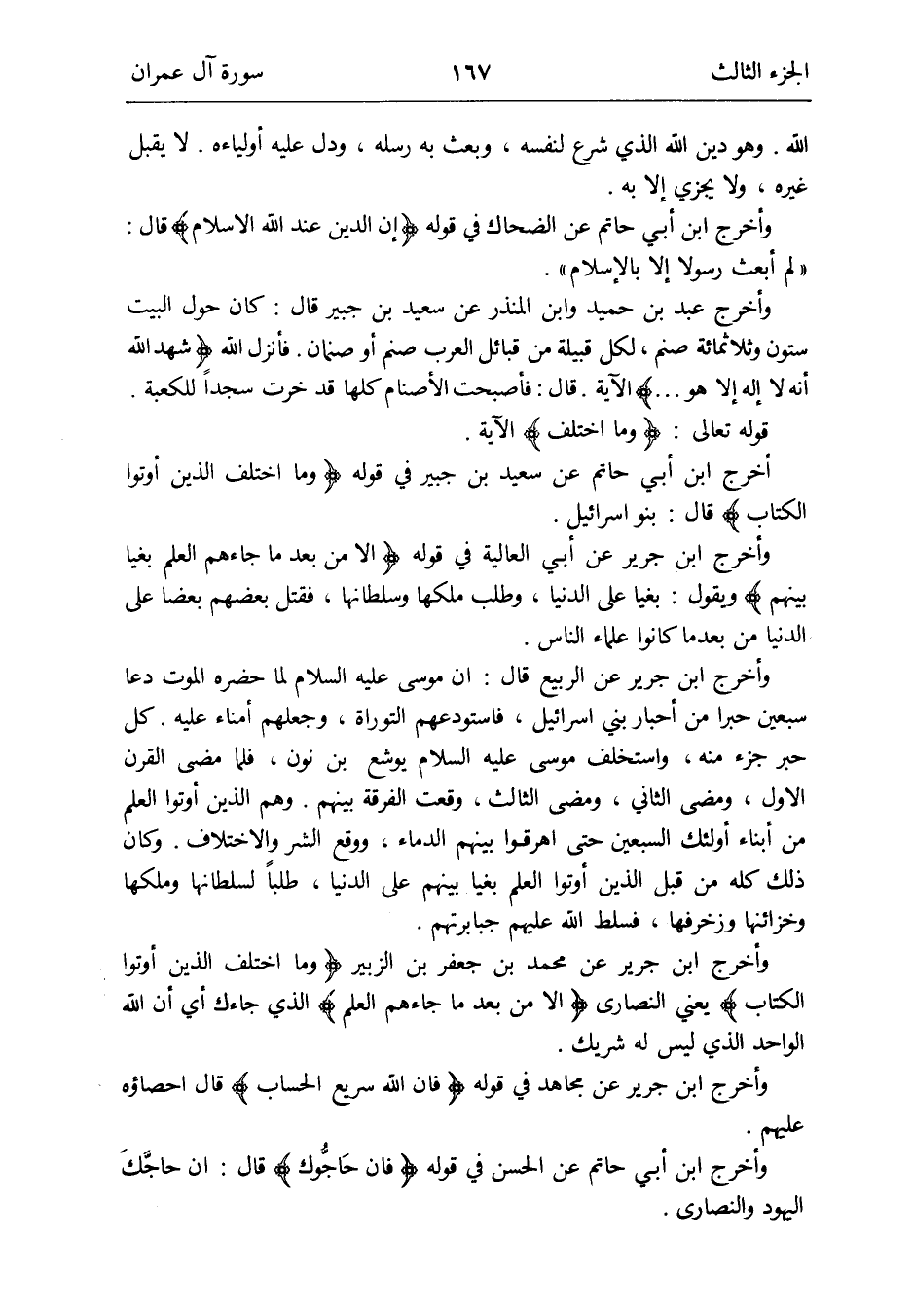وَأخرج ابْن جرير عَن مُحَمَّد بن جَعْفَر بن الزبير {وَمَا اخْتلف الَّذين أُوتُوا الْكتاب} يَعْنِي النَّصَارَى {إِلَّا من بعد مَا جَاءَهُم الْعلم} الَّذِي جَاءَك أَي أَن الله الْوَاحِد الَّذِي لَيْسَ لَهُ شريك