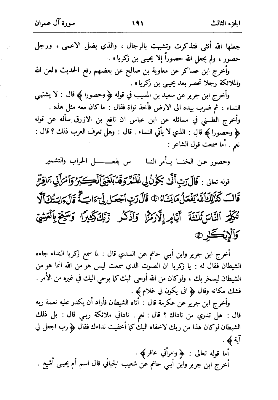 وَأخرج الطسي فِي مسَائِله عَن ابْن عَبَّاس أَن نَافِع بن الْأَزْرَق سَأَلَهُ عَن قَوْله {وَحَصُورًا} قَالَ: ألذي لَا يَأْتِي النِّسَاء