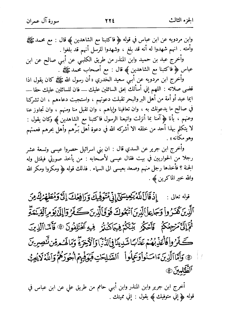 أخرج ابْن جرير وَابْن الْمُنْذر وَابْن أبي حَاتِم من طَرِيق عَليّ عَن ابْن عَبَّاس فِي قَوْله {إِنِّي متوفيك} يَقُول: إِنِّي مميتك