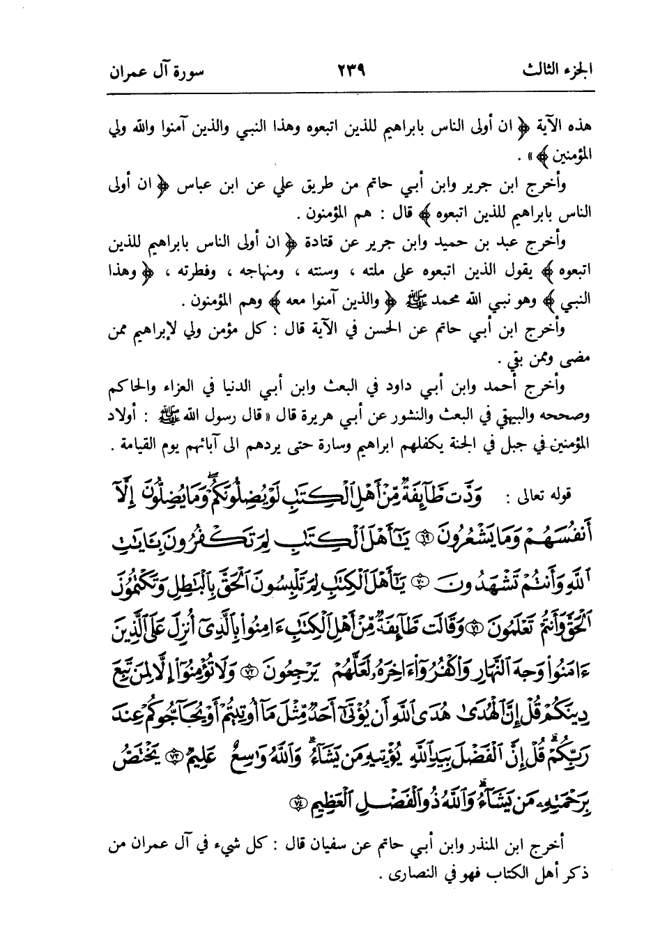 أخرج ابْن الْمُنْذر وَابْن أبي حَاتِم عَن سُفْيَان قَالَ: كل شَيْء فِي آل عمرَان من ذكر اهل الْكتاب فَهُوَ فِي النَّصَارَى