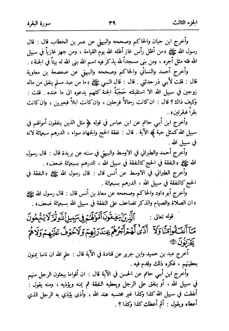 وَأخرج ابْن أبي حَاتِم عَن ابْن عَبَّاس فِي قَوْله {مثل الَّذين يُنْفقُونَ أَمْوَالهم فِي سَبِيل الله كَمثل حَبَّة} الْآيَة