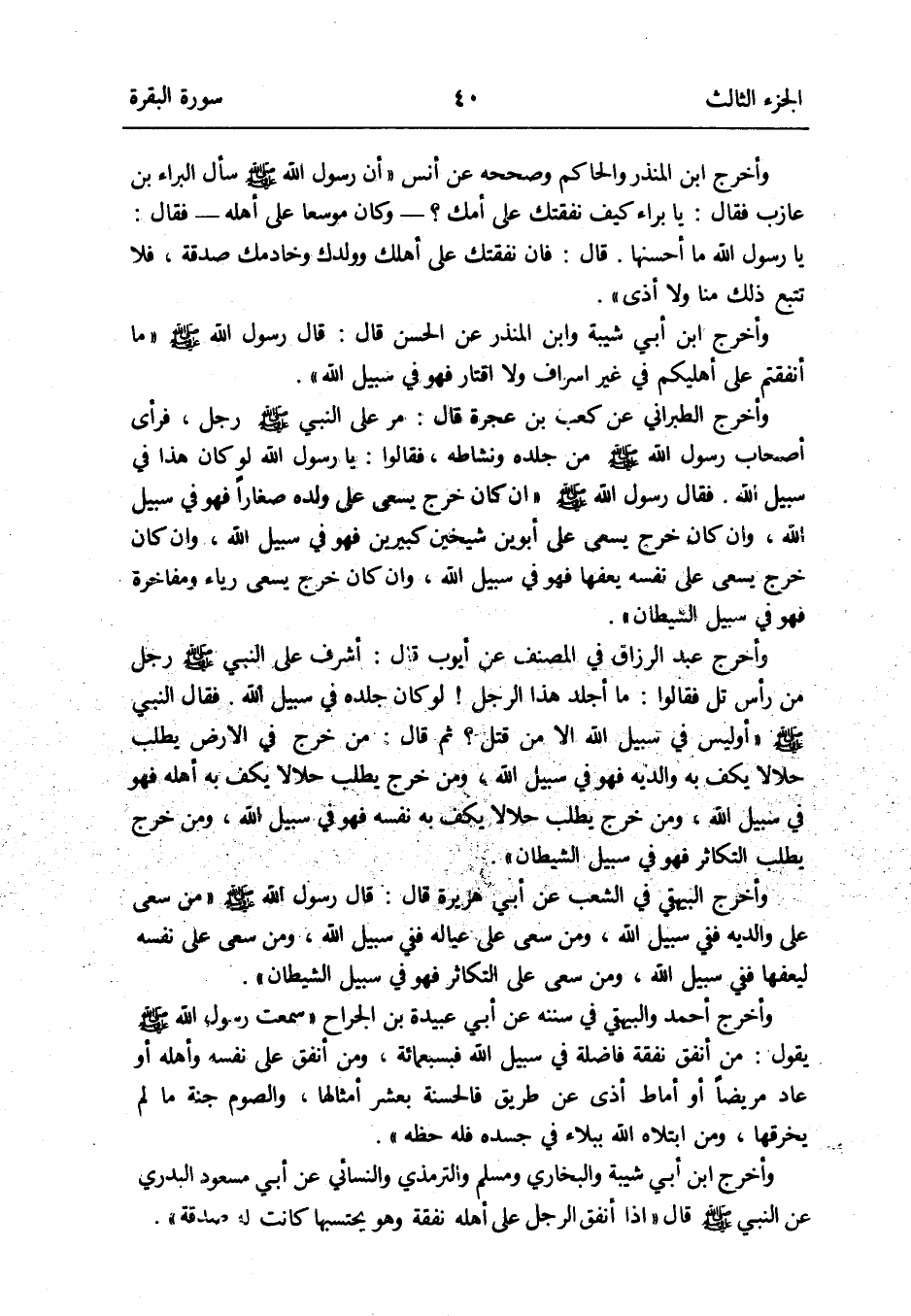 وَأخرج ابْن أبي شيبَة وَالْبُخَارِيّ وَمُسلم وَالتِّرْمِذِيّ وَالنَّسَائِيّ عَن أبي مَسْعُود البدري عَن النَّبِي صلى الله عَلَيْهِ وَسلم قَالَ إِذا أنْفق الرجل على أَهله نَفَقَة وَهُوَ يحتسبها كَانَت لَهُ صَدَقَة