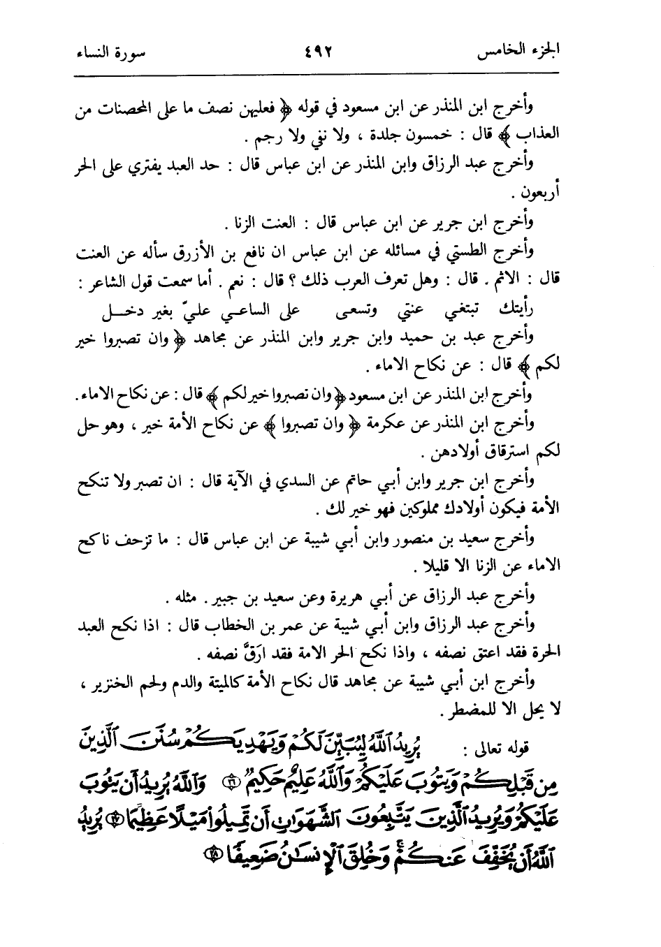 وَأخرج سعيد بن مَنْصُور وَابْن أبي شيبَة عَن ابْن عَبَّاس قَالَ: مَا تزحف ناكح الْإِمَاء عَن الزِّنَا إِلَّا قَلِيلا