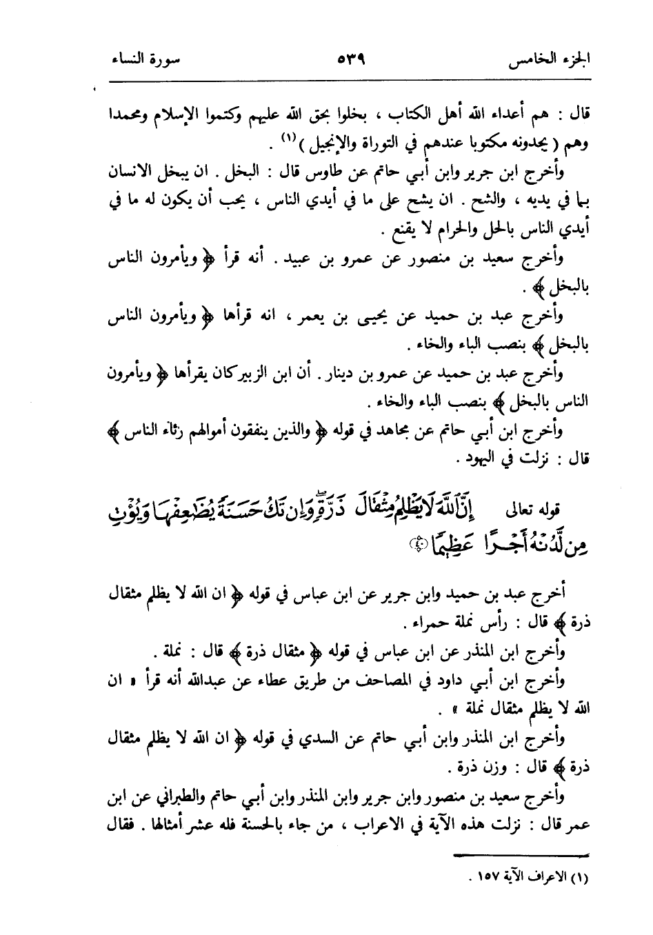 وَأخرج ابْن الْمُنْذر وَابْن أبي حَاتِم عَن السّديّ فِي قَوْله {إِن الله لَا يظلم مِثْقَال ذرة} قَالَ: وزن ذرة