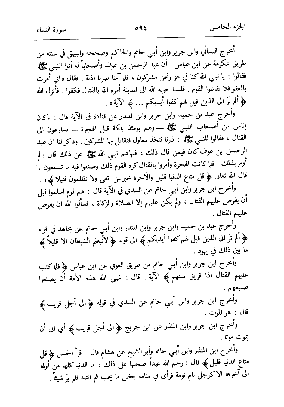 وَأخرج عبد بن حميد وَابْن جرير وَابْن الْمُنْذر وَابْن أبي حَاتِم عَن مُجَاهِد فِي قَوْله {ألم تَرَ إِلَى الَّذين قيل لَهُم كفوا أَيْدِيكُم} إِلَى قَوْله {لاتّبعتم الشَّيْطَان إِلَّا قَلِيلا} مَا بَين ذَلِك فِي يهود