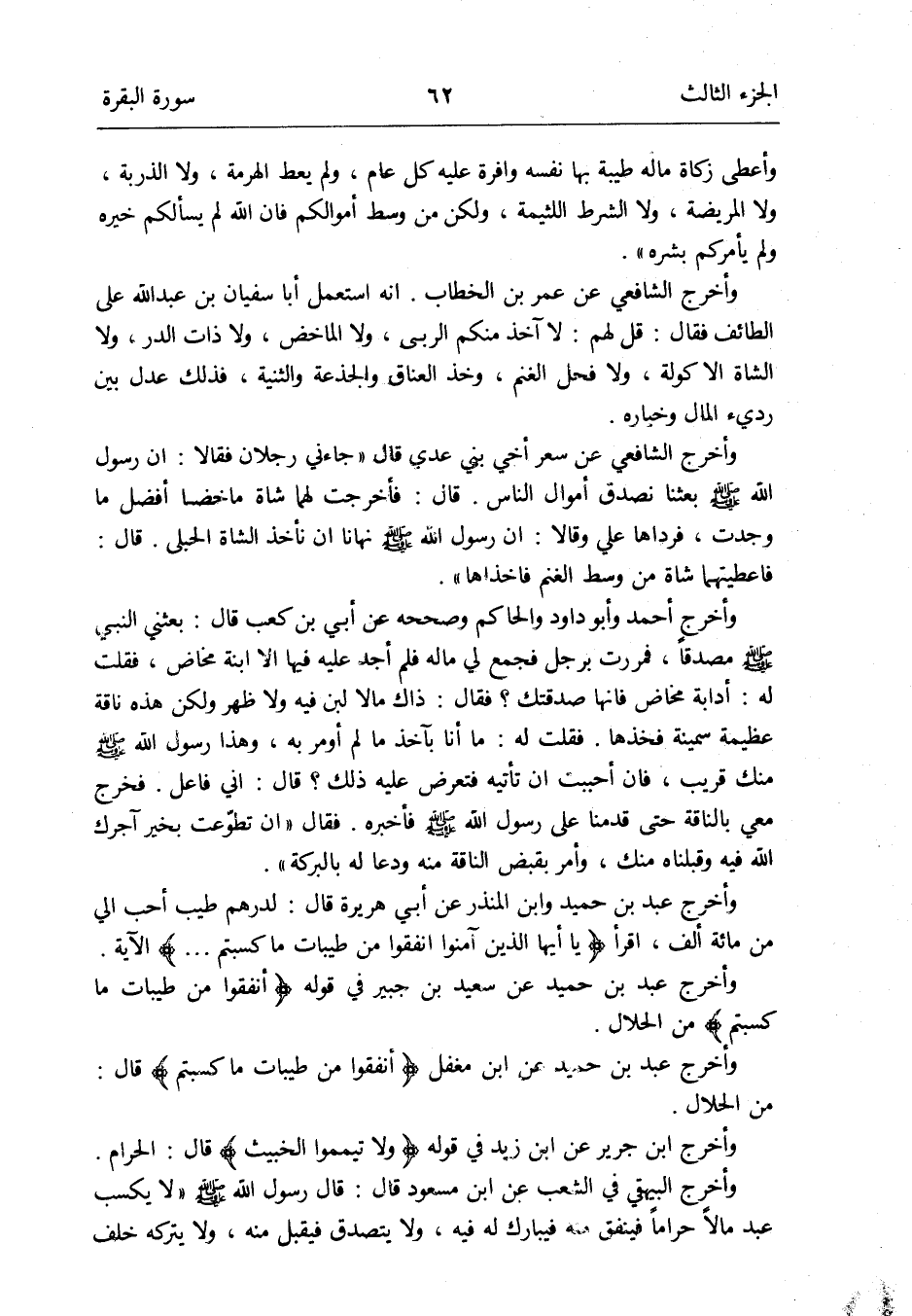 وَأخرج عبد بن حميد وَابْن الْمُنْذر عَن أبي هُرَيْرَة قَالَ: لدرهم طيب أحب إليَّ من مائَة ألف اقْرَأ {يَا أَيهَا الَّذين آمنُوا أَنْفقُوا من طَيّبَات مَا كسبتم} الْآيَة