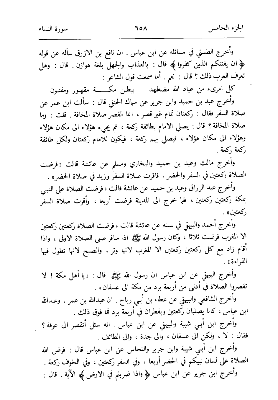 وَأخرج ابْن جرير عَن ابْن عَبَّاس {وَإِذا ضَرَبْتُمْ فِي الأَرْض} الْآيَة