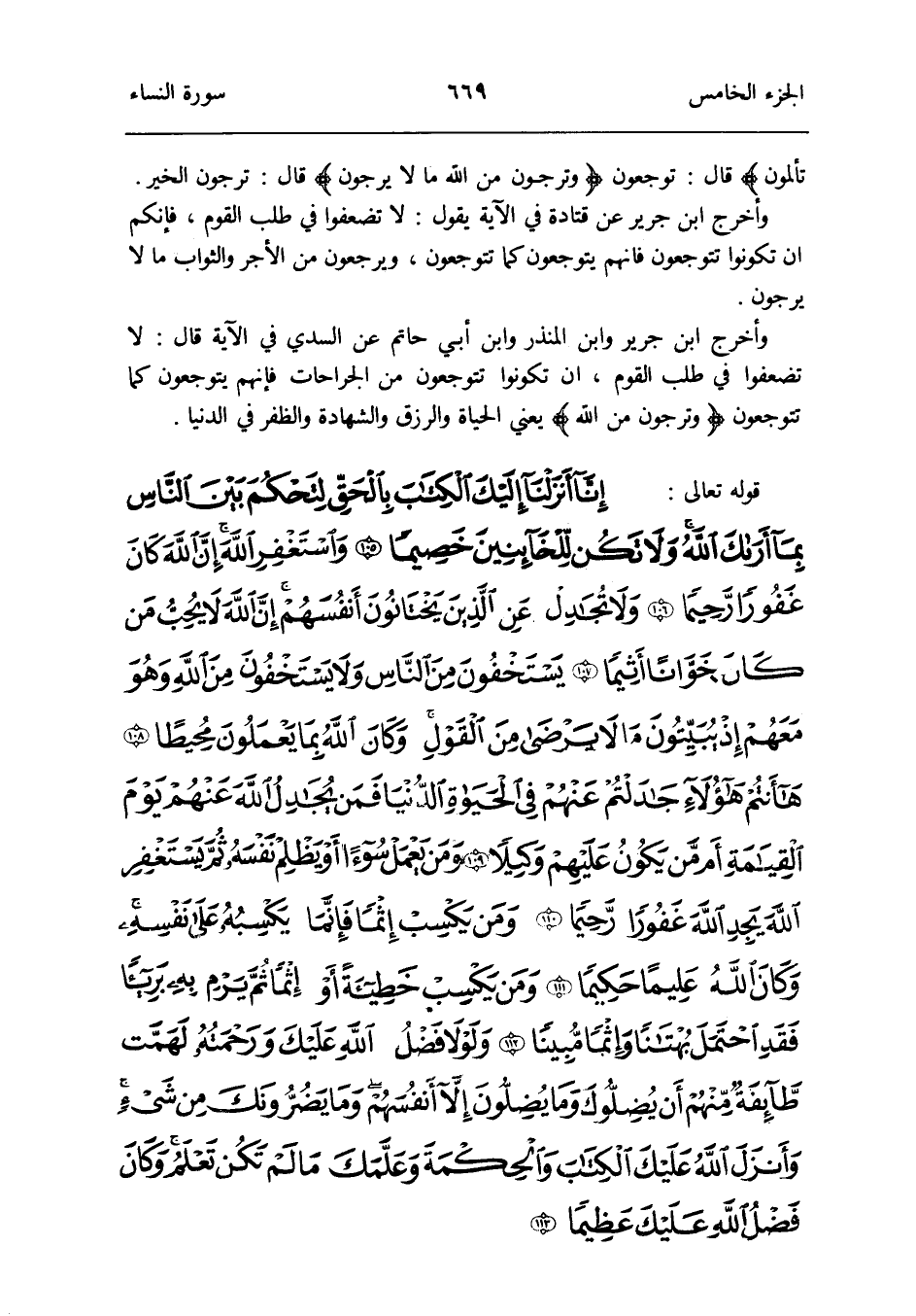 وَأخرج ابْن جرير عَن قَتَادَة فِي الْآيَة يَقُول: لَا تضعفوا فِي طلب الْقَوْم فَإِنَّكُم إِن تَكُونُوا تتوجعون فَإِنَّهُم يتوجعون كَمَا تتوجعون ويرجعون من الْأجر وَالثَّوَاب مَا لَا يرجون