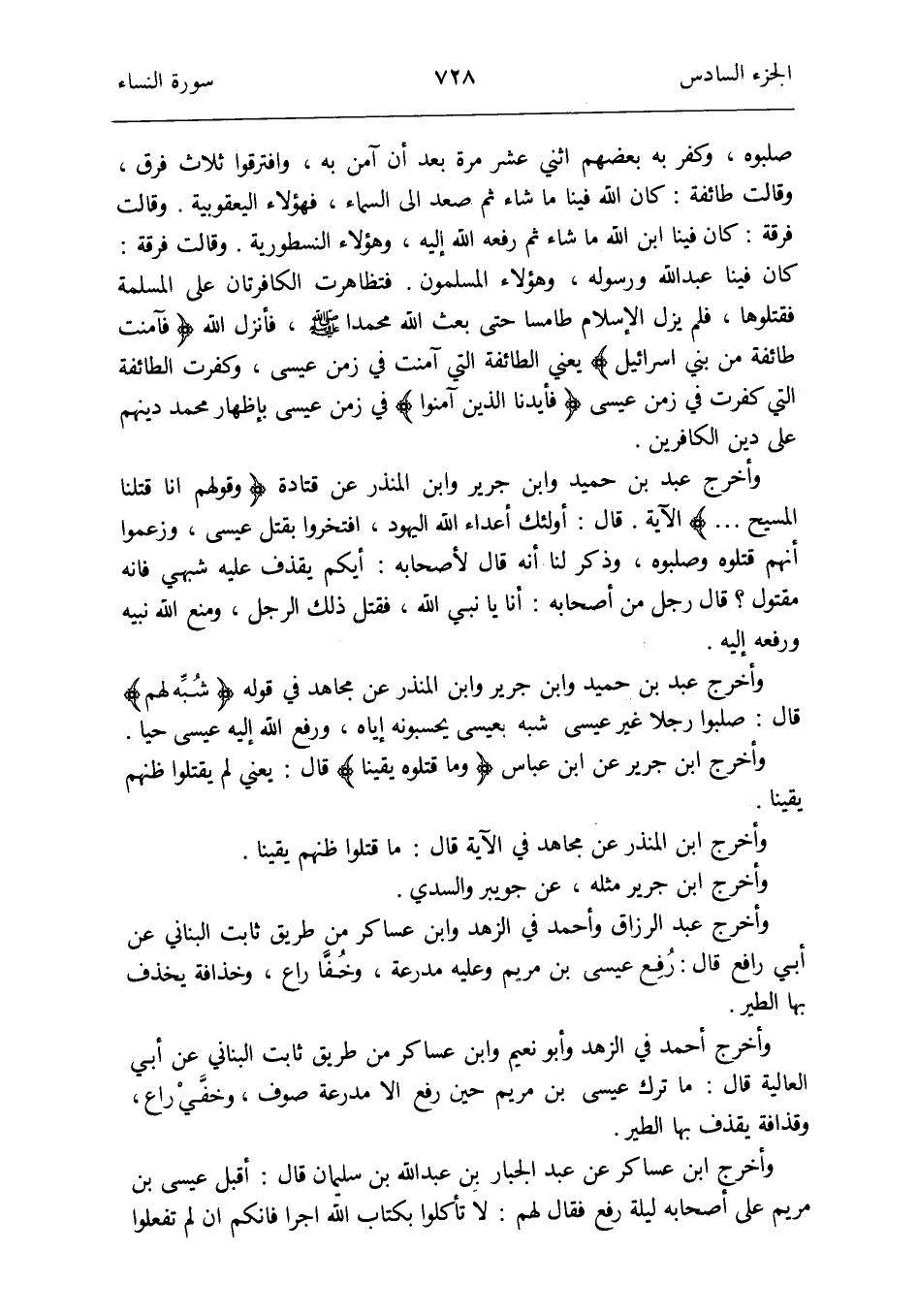 وَأخرج عبد بن حميد وَابْن جرير وَابْن الْمُنْذر عَن قَتَادَة {وَقَوْلهمْ إِنَّا قتلنَا الْمَسِيح} الْآيَة