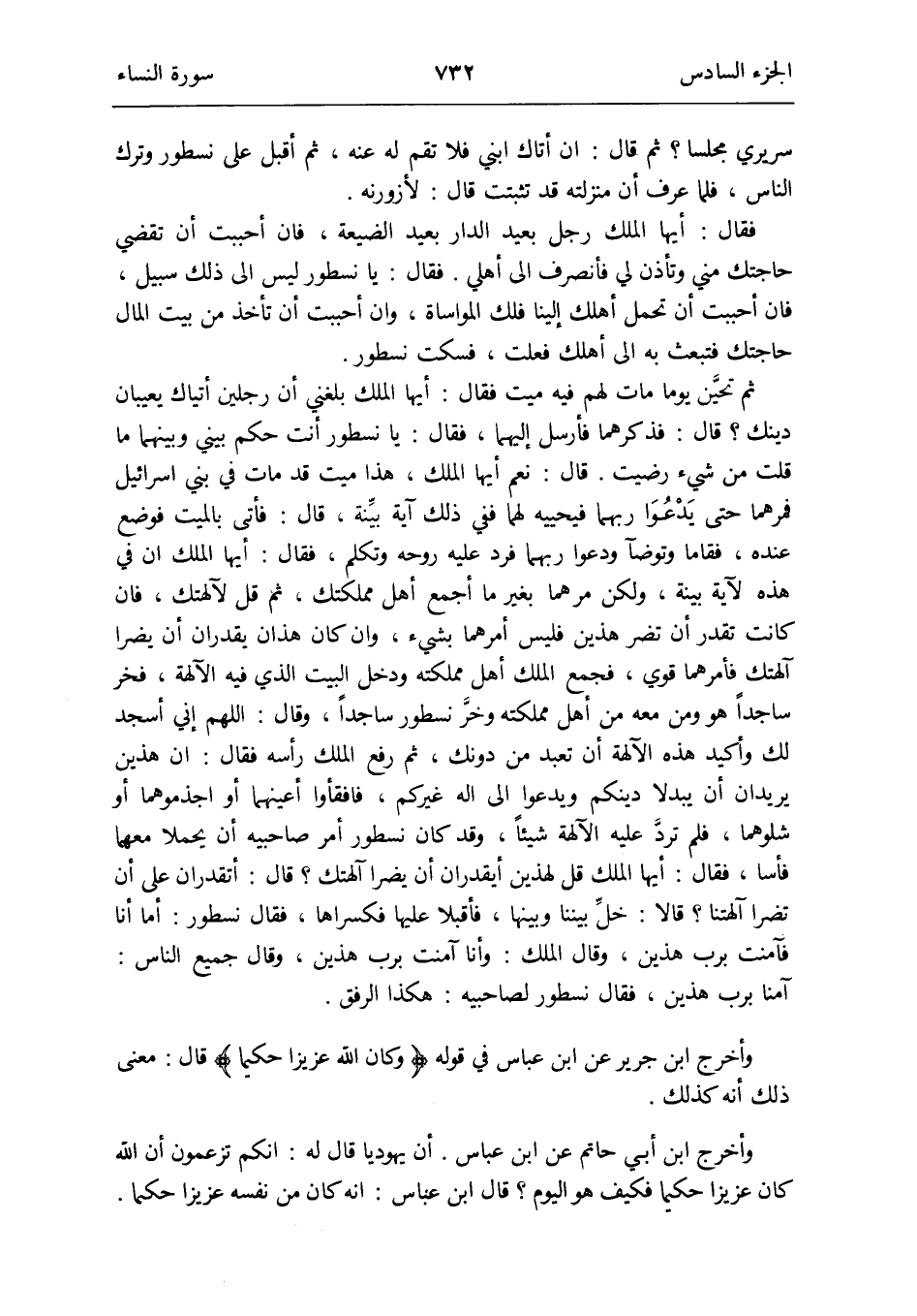 وَأخرج ابْن جرير عَن ابْن عَبَّاس فِي قَوْله {وَكَانَ الله عَزِيزًا حكيماً} قَالَ: معنى ذَلِك أَنه كَذَلِك