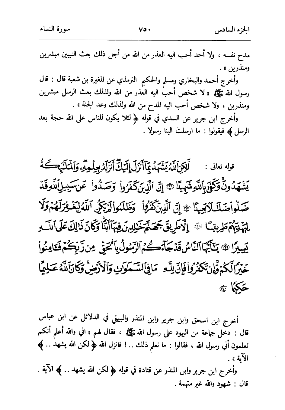 وَأخرج ابْن جرير عَن السّديّ فِي قَوْله {لِئَلَّا يكون للنَّاس على الله حجَّة بعد الرُّسُل} فيقولوا: مَا أرسلتَ إِلَيْنَا رَسُولا