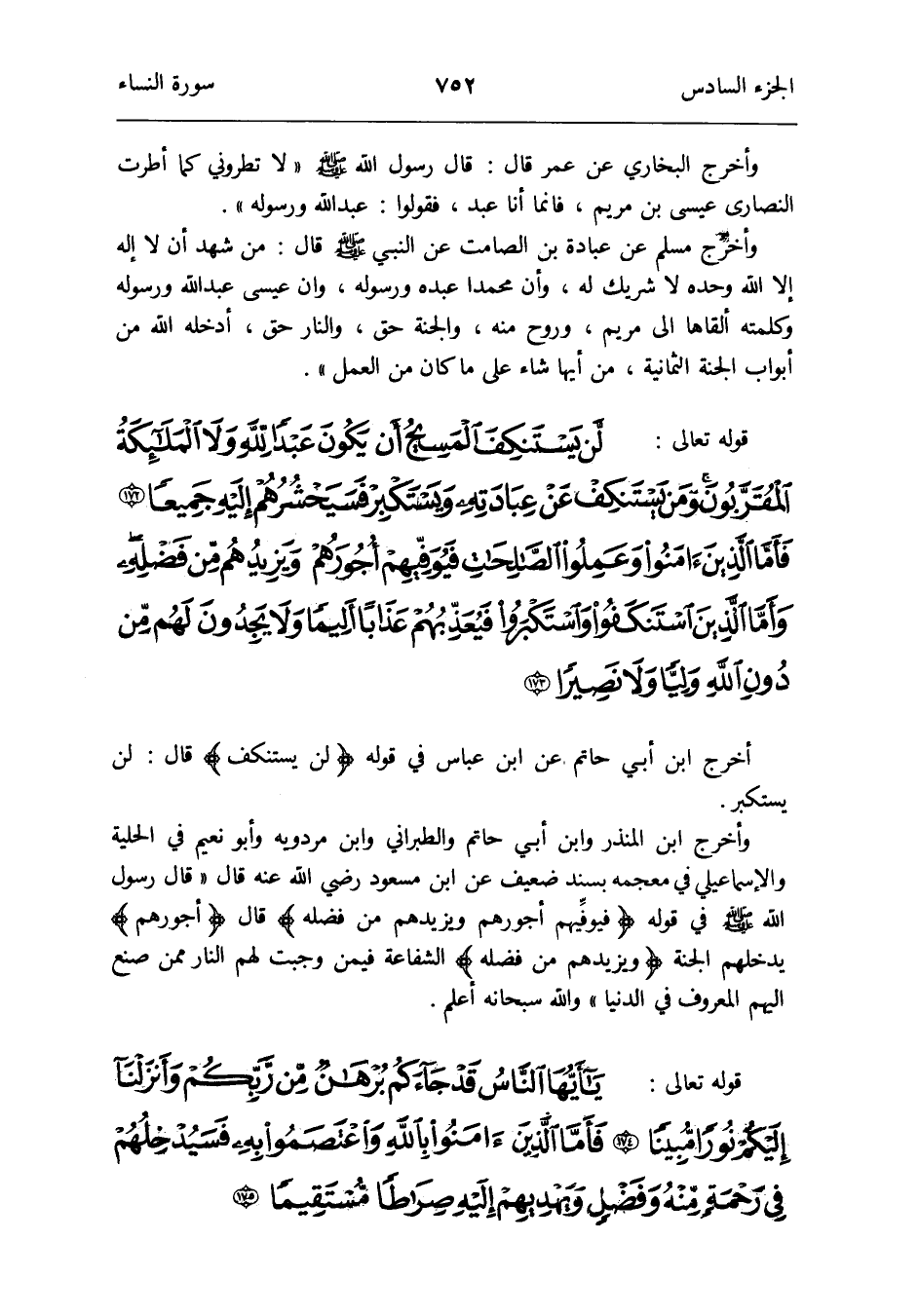 أخرج ابْن أبي حَاتِم عَن ابْن عَبَّاس فِي قَوْله {لن يستنكف} قَالَ: لن يستكبر