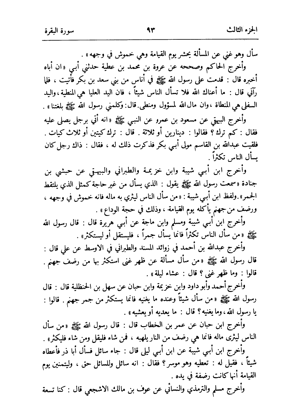 وَأخرج ابْن أبي شيبَة وَمُسلم وَابْن ماجة عَن أبي هُرَيْرَة قَالَ: قَالَ رَسُول الله صلى الله عَلَيْهِ وَسلم من سَأَلَ النَّاس تكثراً فَإِنَّمَا يسْأَل جمراً فليستقل أَو ليستكثر