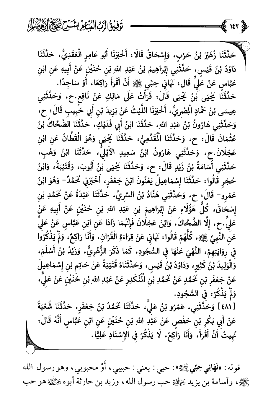 [٤٨١] وَحَدَّثَنِي، عَمْرُو بْنُ عَلِيٍّ، حَدَّثَنَا مُحَمَّدُ بْنُ جَعْفَرٍ، حَدَّثَنَا شُعْبَةُ عَنْ أَبِي بَكْرِ بْنِ حَفْصٍ عَنْ عَبْدِ اللَّهِ بْنِ حُنَيْنٍ عَنِ ابْنِ عَبَّاسٍ أَنَّهُ قَالَ: نُهِيتُ أَنْ أَقْرَأَ، وَأَنَا رَاكِعٌ، لَا يَذْكُرُ فِي الإِسْنَادِ عَلِيًّا.