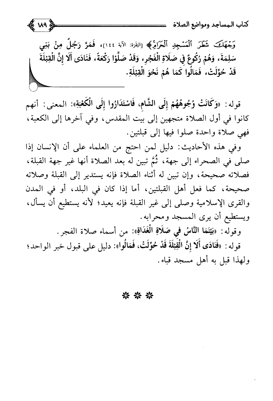 وَجْهَكَ شَطْرَ الْمَسْجِدِ الْحَرَامِ}، فَمَرَّ رَجُلٌ مِنْ بَنِي سَلِمَةَ، وَهُمْ رُكُوعٌ فِي صَلَاةِ الْفَجْرِ، وَقَدْ صَلَّوْا رَكْعَةً، فَنَادَى أَلَا إِنَّ الْقِبْلَةَ قَدْ حُوِّلَتْ، فَمَالُوا كَمَا هُمْ نَحْوَ الْقِبْلَةِ.