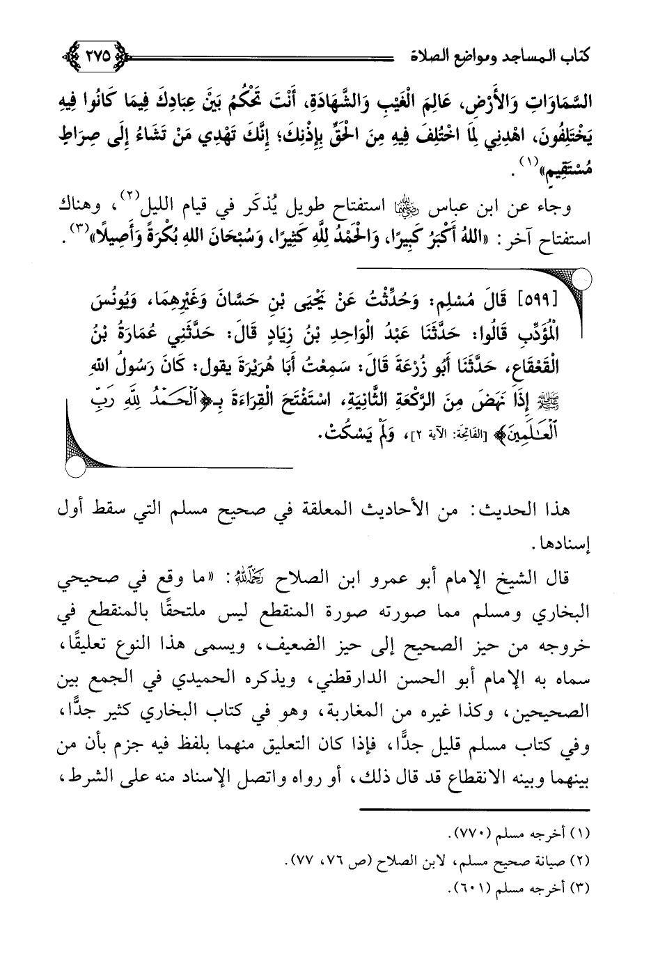 [٥٩٩] قَالَ مُسْلِم: وَحُدِّثْتُ عَنْ يَحْيَى بْنِ حَسَّانَ وَغَيْرِهِمَا، وَيُونُسَ الْمُؤَدِّبِ قَالُوا: حَدَّثَنَا عَبْدُ الْوَاحِدِ بْنُ زِيَادٍ قَالَ: حَدَّثَنِي عُمَارَةُ بْنُ الْقَعْقَاعِ، حَدَّثَنَا أَبُو زُرْعَةَ قَالَ: سَمِعْتُ أَبَا هُرَيْرَةَ يقول: كَانَ رَسُولُ اللَّهِ صلى الله عليه وسلم إِذَا نَهَضَ مِنَ الرَّكْعَةِ الثَّانِيَةِ، اسْتَفْتَحَ الْقِرَاءَةَ بِـ {الْحَمْدُ لِلَّهِ رَبِّ الْعَالَمِينَ}، وَلَمْ يَسْكُتْ.