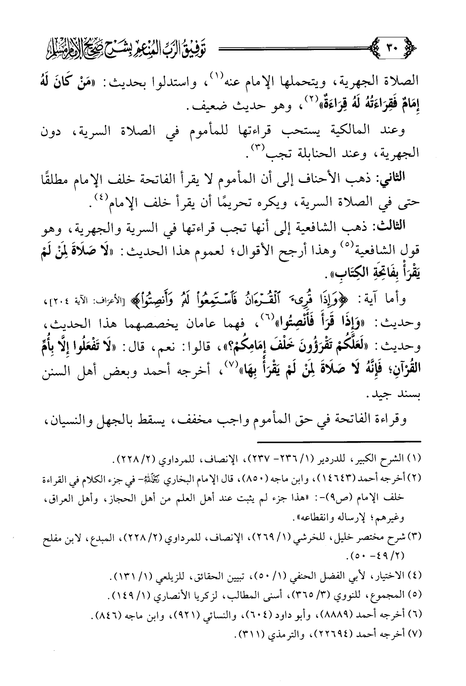 (¬٣) شرح مختصر خليل، للخرشي (١/ ٢٦٩)، الإنصاف، للمرداوي (٢/ ٢٢٨)، المبدع، لابن مفلح (٢/ ٤٩ - ٥٠).