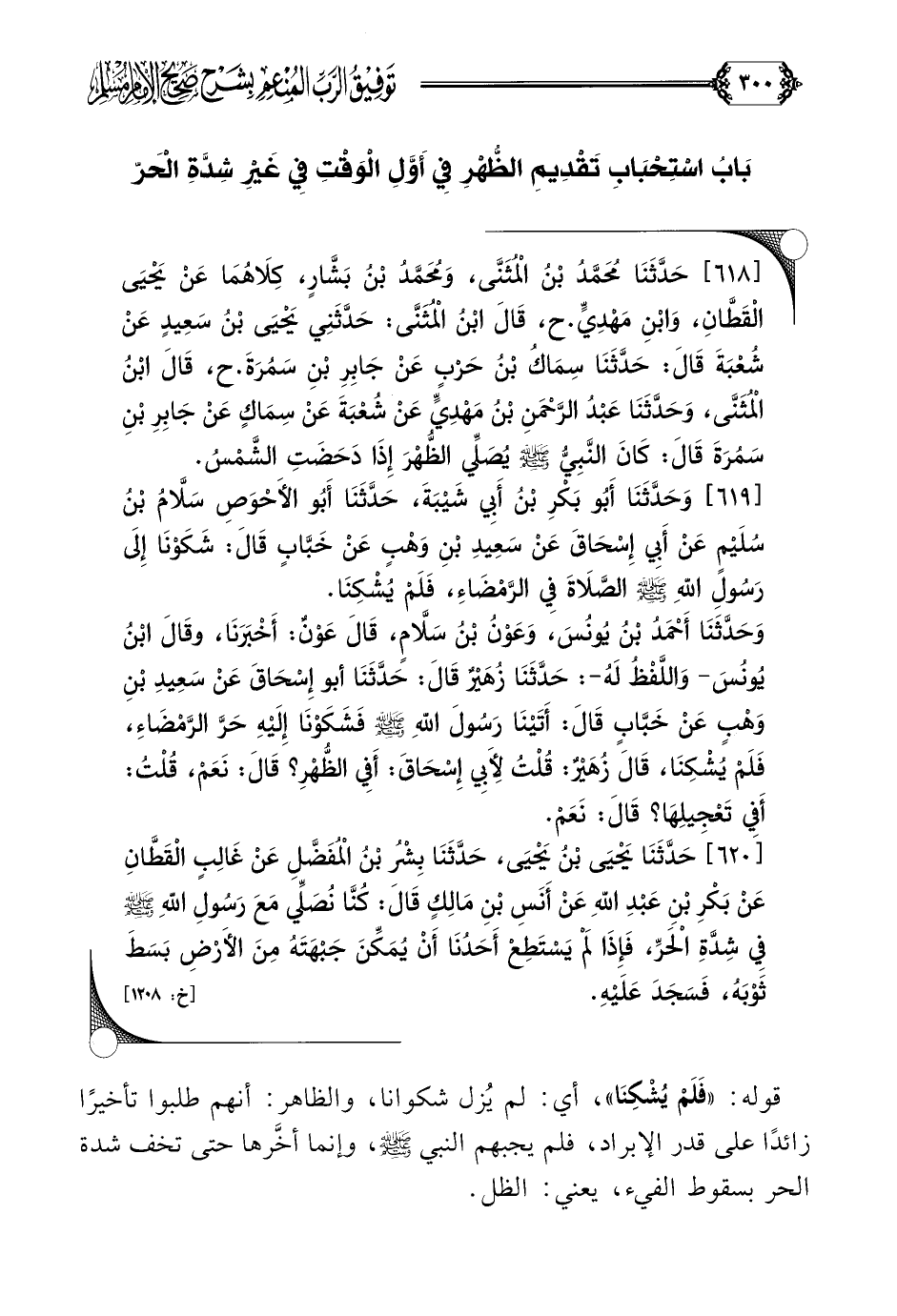 [٦١٨] حَدَّثَنَا مُحَمَّدُ بْنُ الْمُثَنَّى، وَمُحَمَّدُ بْنُ بَشَّارٍ، كِلَاهُمَا عَنْ يَحْيَى الْقَطَّانِ، وَابْنِ مَهْدِيٍّ. ح، قَالَ ابْنُ الْمُثَنَّى: حَدَّثَنِي يَحْيَى بْنُ سَعِيدٍ عَنْ شُعْبَةَ قَالَ: حَدَّثَنَا سِمَاكُ بْنُ حَرْبٍ عَنْ جَابِرِ بْنِ سَمُرَةَ. ح، قَالَ ابْنُ الْمُثَنَّى، وَحَدَّثَنَا عَبْدُ الرَّحْمَنِ بْنُ مَهْدِيٍّ عَنْ شُعْبَةَ عَنْ سِمَاكٍ عَنْ جَابِرِ بْنِ سَمُرَةَ قَالَ: كَانَ النَّبِيُّ صلى الله عليه وسلم يُصَلِّي الظُّهْرَ إِذَا دَحَضَتِ الشَّمْسُ.
